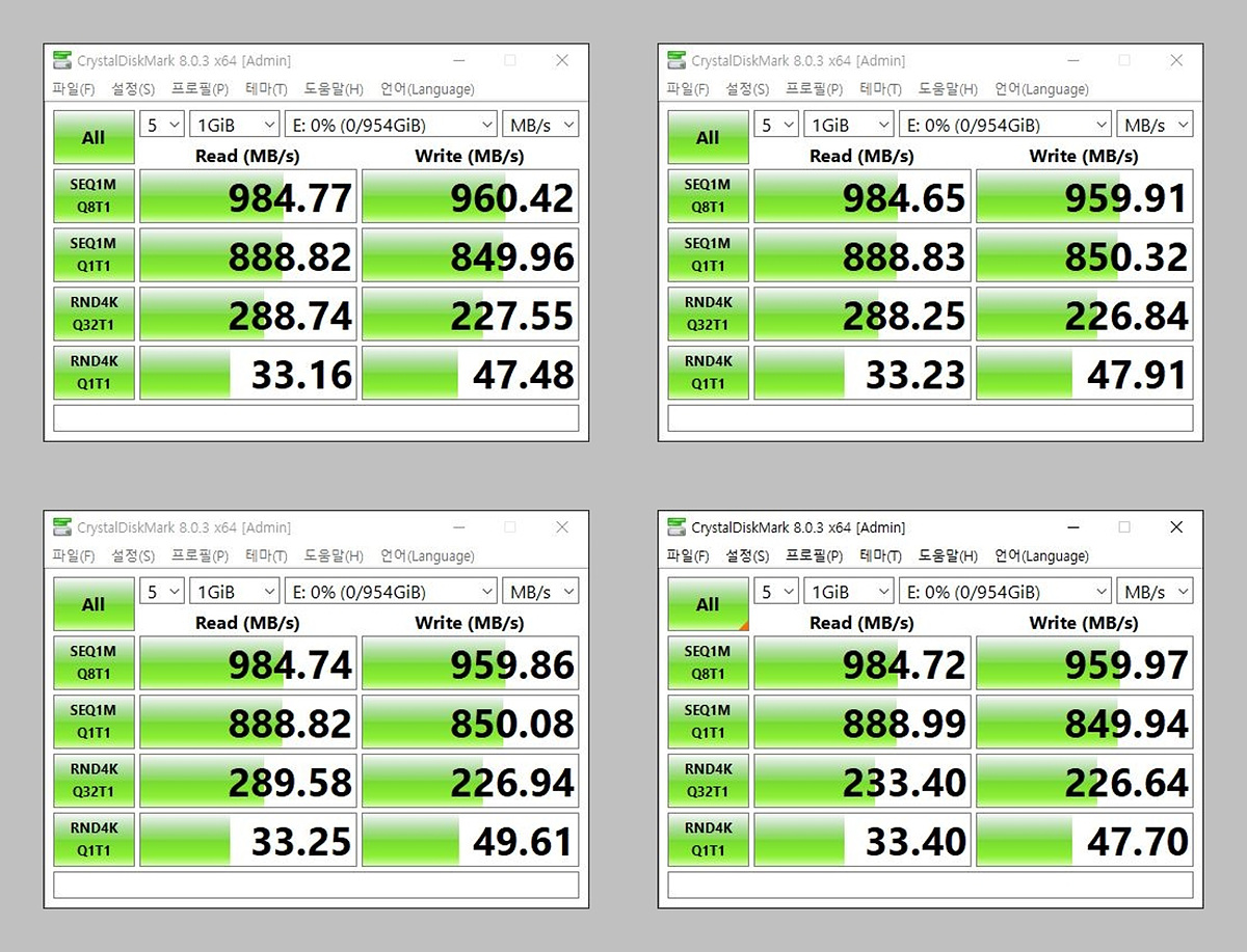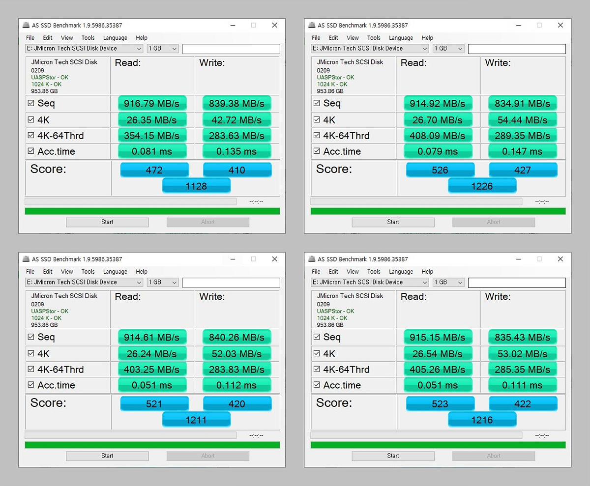 AS SSD 역시 읽기보다는 쓰기에서 좀 더 약한 모습이었습니다.