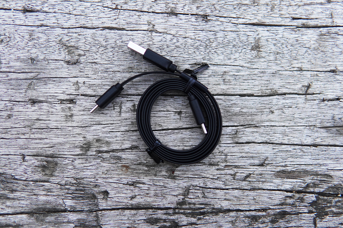 케이블은 칼국수 케이블이라고 부르는 플랫 형태로 되어있으며 USB Type-C / A가 모두 같이 있는 2-in-1 방식입니다. 실제 사용하기 전에는 괜찮을 거 같았는데 실제 사용해보니 좀 불편하더군요. 케이블의 길이가 50cm로 다른 제품보다 좀 더 긴 편이라 너무 걸리적거리는 느낌이었습니다. 이런 방식을 좋아하는 분들이 있을 수도 있겠지만 각각의 케이블을 따로 넣어주거나 별도로 C to A 젠더를 넣는 방식이 좀 더 좋았을 거 같습니다.