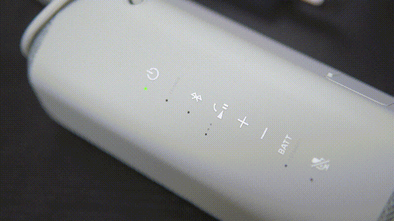 스피커의 조작을 위한 버튼으로 딱히 설명서가 없어도 바로 확인할 수 있을 만큼 직관적인 인터페이스를 가지고 있습니다. BATT 버튼을 누르면 현재 배터리 용량을 음성(영어)으로 안내하며 1초 정도 누르면 스태미너 모드로 바뀌면서 흰색 LED가 켜집니다. 스태미너 모드는 배터리의 효율을 극대화하는 모드로 소리가 많이 바뀌어서 추천할 수는 없지만 배터리가 얼마 남지 않았을때는 유용하게 사용할 수 있습니다.