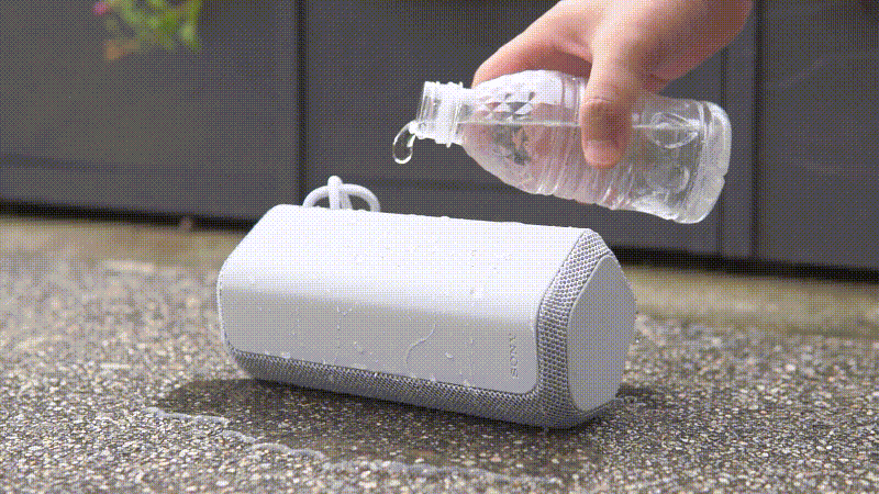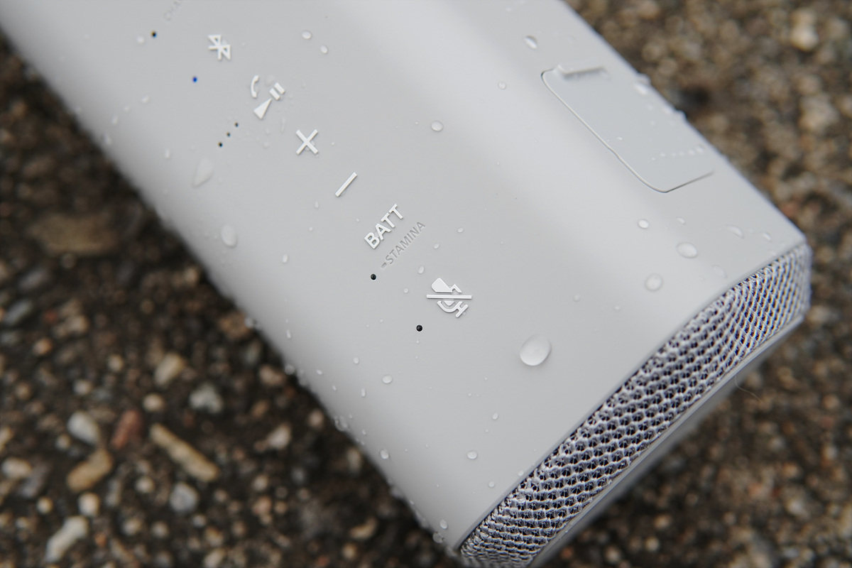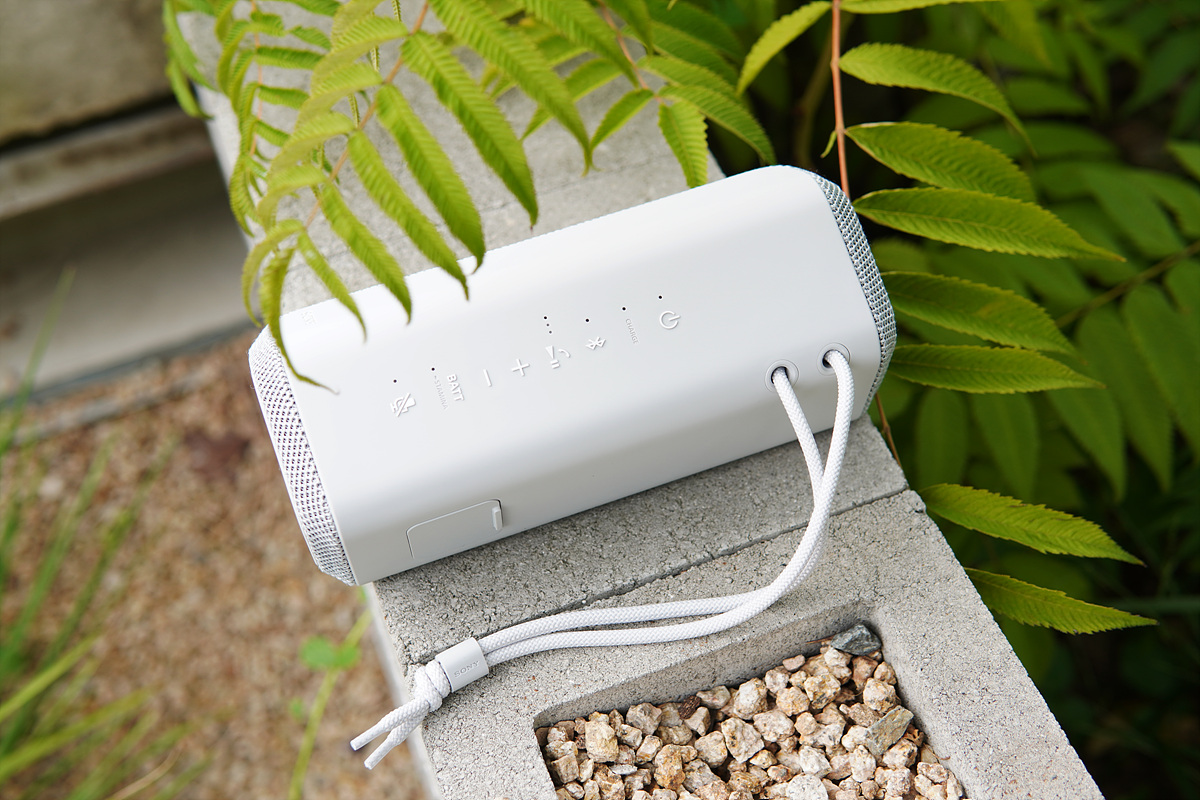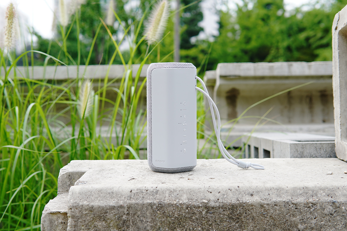 실내에서 사용하는 스피커의 경우 알루미늄이나 메탈 재질도 괜찮지만 실외에서 사용할 때는 작은 충격에도 찌그러지거나 스크래치가 나기 때문에 적합하지 않습니다. SRS-XE200은 고무와 메시로 되어있어 충격이나 스크레치에도 좋은 효과를 보이며 무엇보다 IP67 등급의 방진 방수로 물놀이를 갈 때도 전혀 부담이 없습니다.