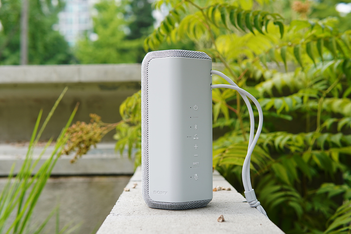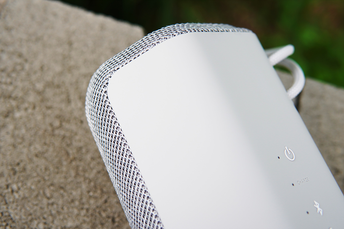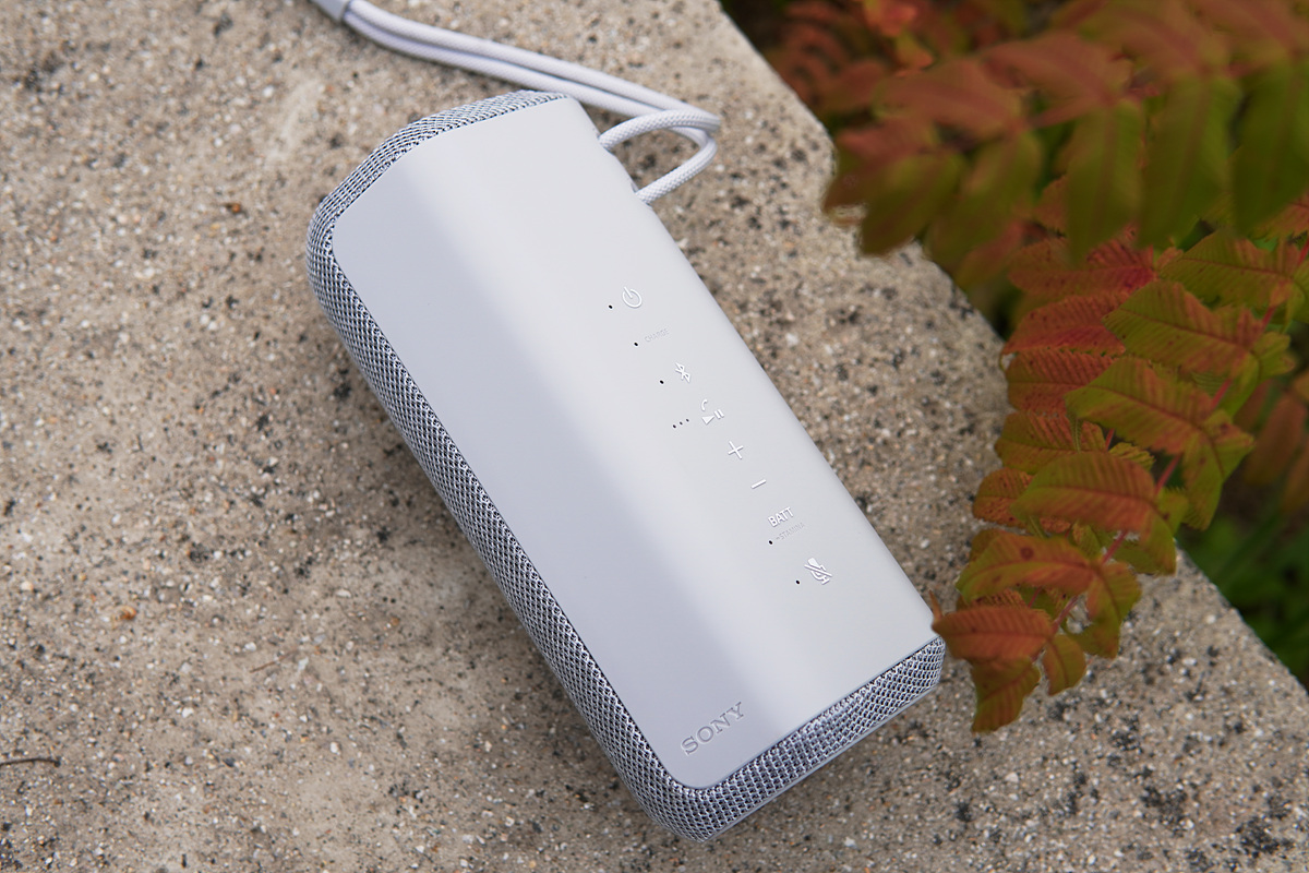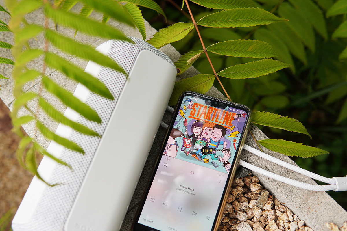 실내에서 사용하는 스피커의 경우 알루미늄이나 메탈 재질도 괜찮지만 실외에서 사용할 때는 작은 충격에도 찌그러지거나 스크래치가 나기 때문에 적합하지 않습니다. SRS-XE200은 고무와 메시로 되어있어 충격이나 스크레치에도 좋은 효과를 보이며 무엇보다 IP67 등급의 방진 방수로 물놀이를 갈 때도 전혀 부담이 없습니다.