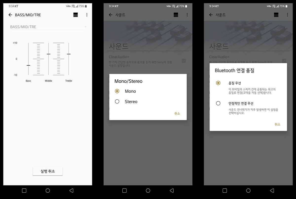 전원에서 노이즈 감지 / 스태미너 모드는 모두 꺼두는 걸 추천드립니다. 특히나 스태미너 모드에서는 드라이버의 움직임을 제한하는 건지 저음이 상당히 빠져서 음악을 들을 때 많이 심심해지고 먹먹한 느낌이었습니다.