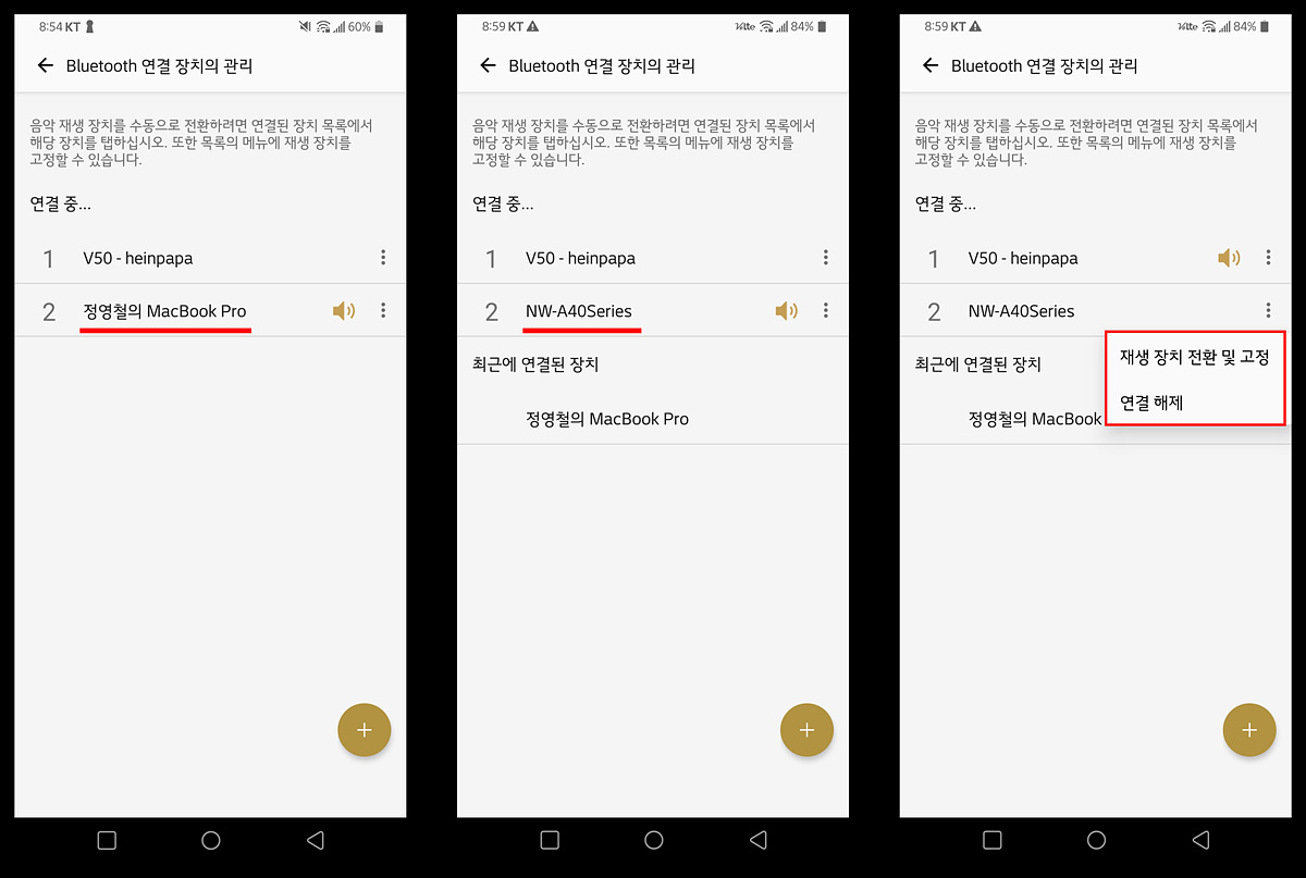 Music Center 앱에서는 등록된 기기의 관리(전환, 연결 해제)를 할 수 있습니다.