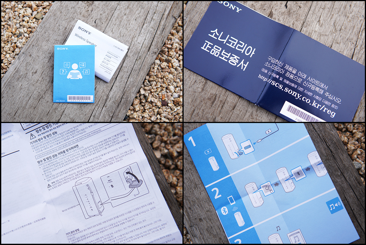 다국어로 된 설명서와 그림으로 되어있는 퀵 스타트 가이드로 누구나 쉽게 제품의 기능을 확인할 수 있습니다. 아래에서 다시 다루겠지만 SRS-XE200는 설명서가 필요 없을 만큼 직관적인 버튼(인터페이스)으로 되어있습니다.