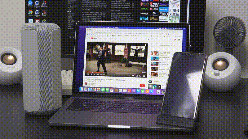노트북으로 음악을 듣고 있다가 전화가 오면 재생을 멈추고 자동으로 전화(스피커, 통화)로 전환이 되며 통화가 끝나면 다시 노트북에서 음악을 들을 수 있습니다.