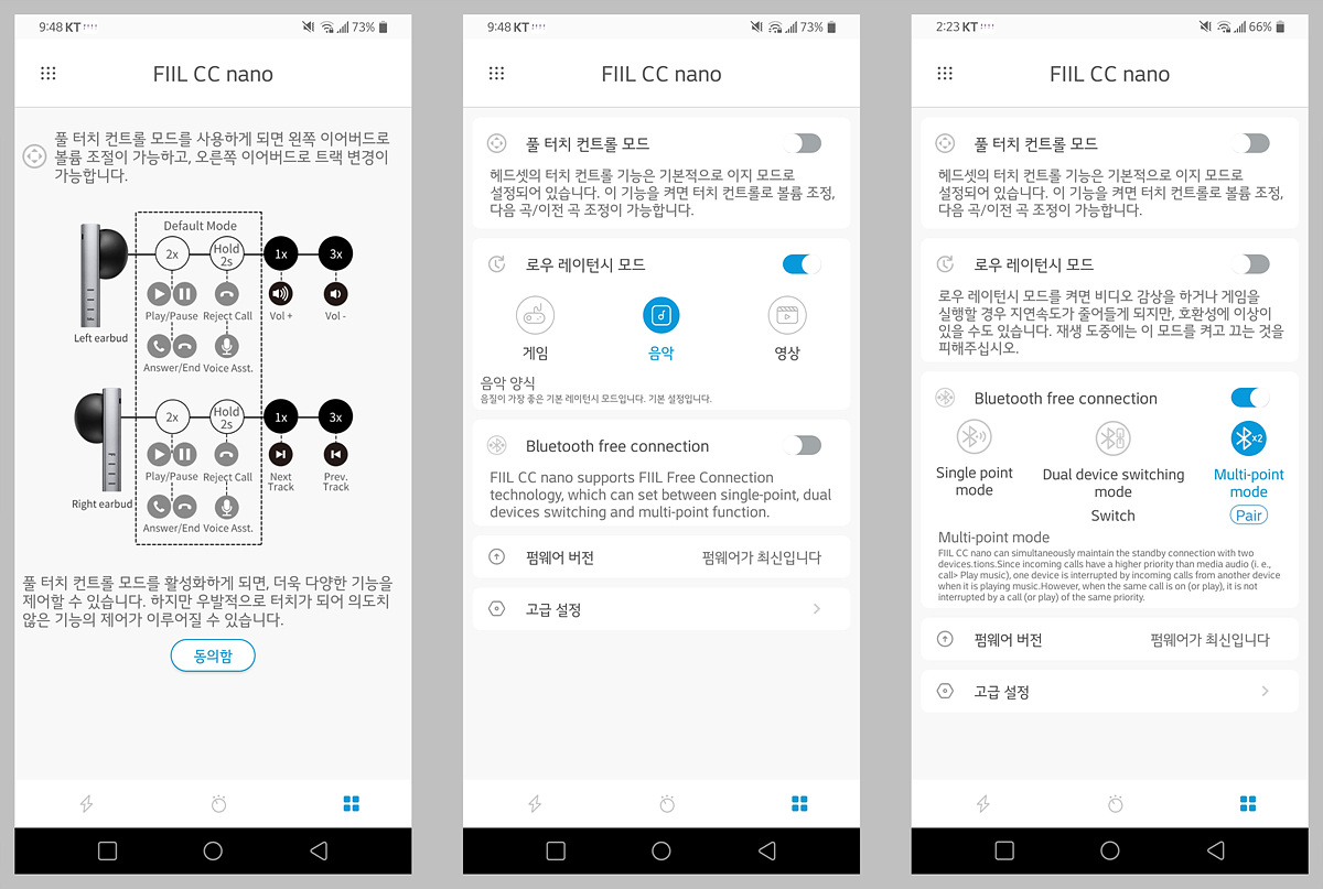 필 씨씨 나노는 오픈형이라는 특징과 함께 두대의 기기에 동시에 연결해서 자동으로 연결을 해주는 멀티 포인트를 지원하고 있습니다. 멀티 포인트는 전용 앱을 통해서 설정할 수 있으며 터치 버튼의 기능과 함께 여러 가지 프리셋과 사용자 EQ로 바꿀 수 있습니다. FIIL 이어폰은 이전에 T1Sx, T1 Lite 두 개를 사용했었고 T1 Lite는 현재도 사용하고 있을 만큼 개인적으로는 상당히 좋아하는 브랜드인데 이번 제품은 어떤 기능이나 소리를 들려줄지 상당히 기대를 되네요. 아래에서 자세하게 살펴보도록 하겠습니다.