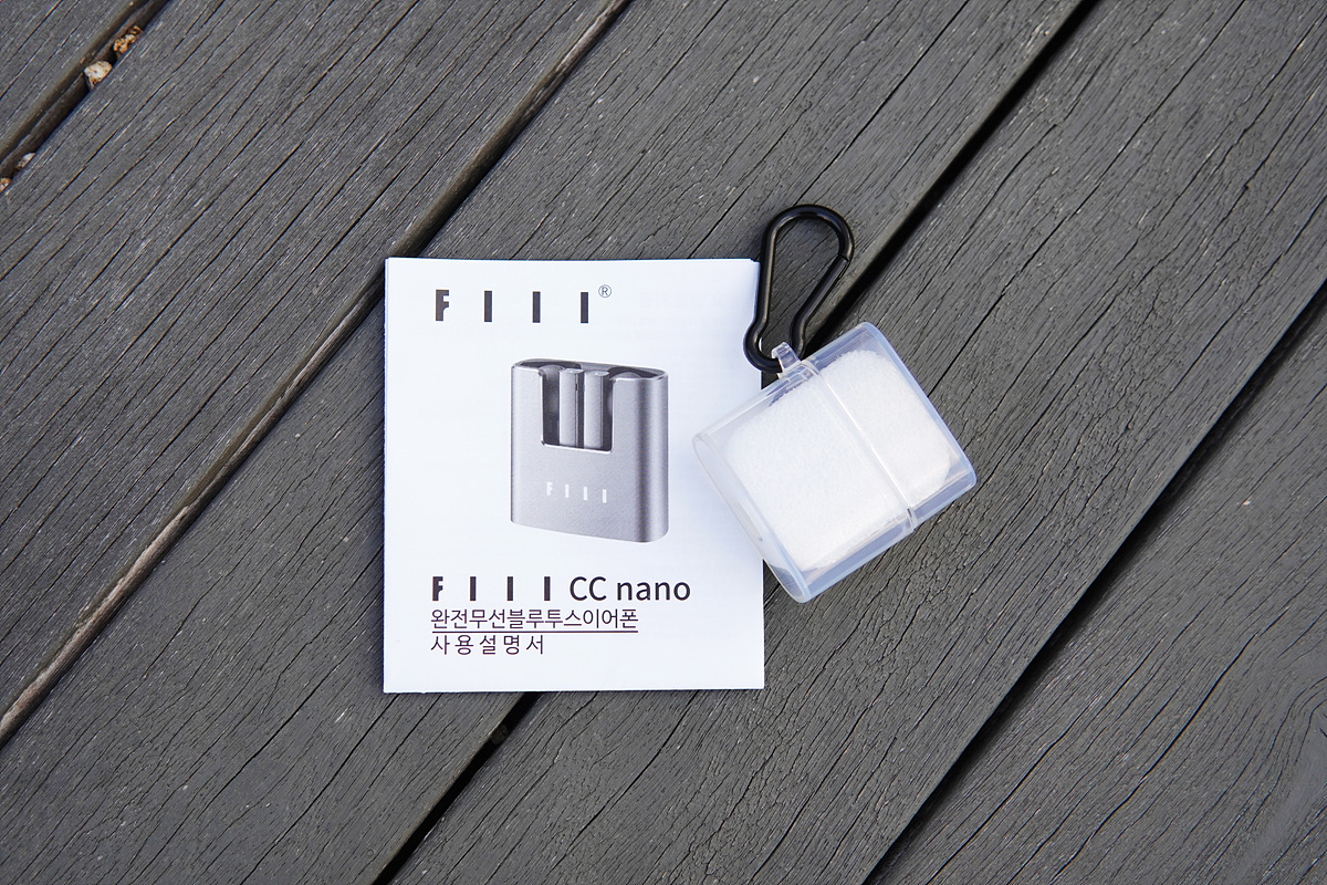 아랫쪽에 Type-C 포트로 충전을 할 수 있으며 무선 충전은 지원하지 않습니다. FIIL CC nano가 7만원대의 보급형 라인이긴 하지만 요즘은 5만원 이하의 제품들도 무선 충전을 지원하고 있어서 이런 부분은 아쉽더군요.