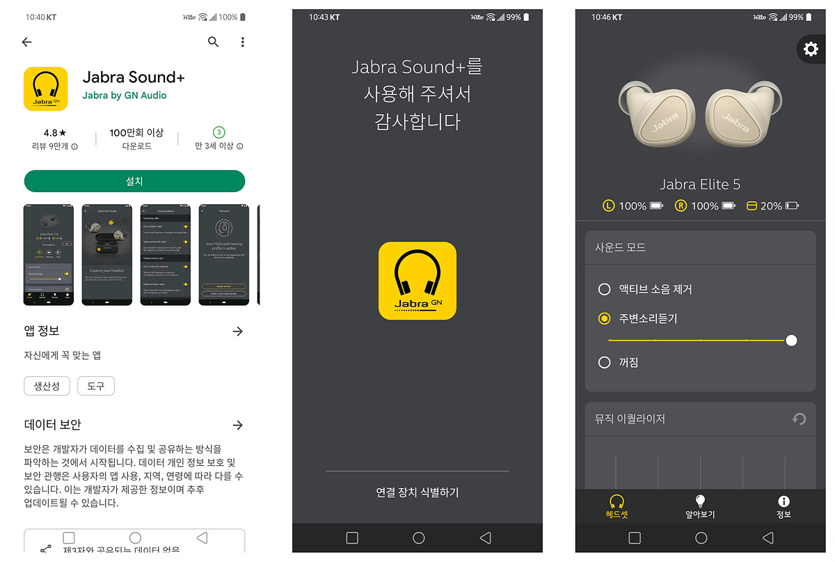 자브라 기기(이어폰, 헤드폰, 헤드셋)를 사용하기 위해서는 Jabra Sound + 앱을 설치해야 더욱 편리하게 사용할 수 있으며 안드로이드와 IOS 모두 지원하고 있습니다.