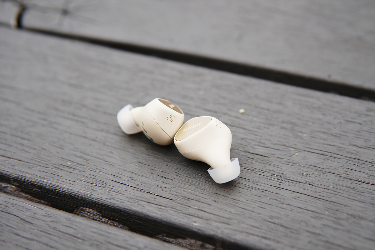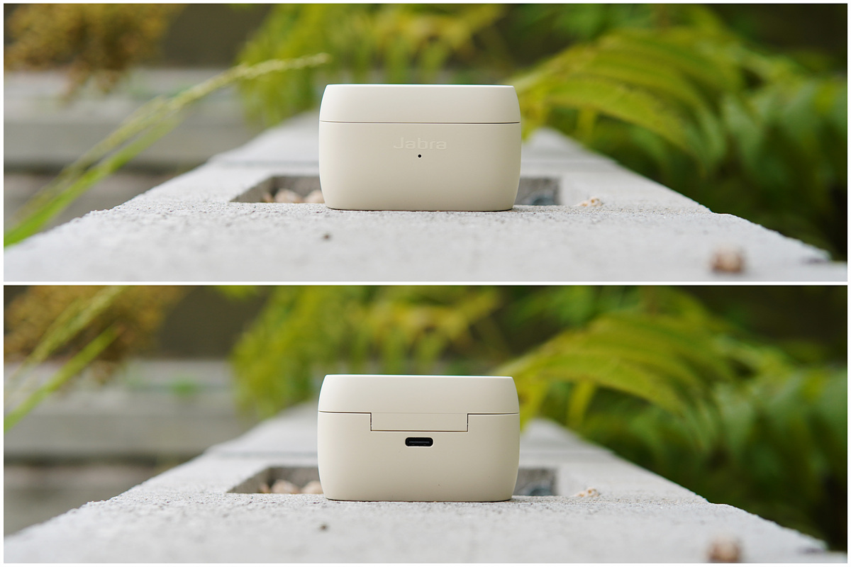 이어버드 버튼에 있는 Jabra의 "J", "A" 글자 양쪽에는 외부 소리를 수음하기 위한 마이크가 있으며 바람 소리를 줄여주기 위해 작은 구멍들이 여러 개 뚫려있지만 완벽하게 차단되지는 않더군요. 노이즈 캔슬링을 켠 상태에서 음악을 들을 때는 살짝 거슬리는 정도지만 히어쓰루나 통화에서는 바람 소리가 더 크게 들려서 거슬렸습니다.