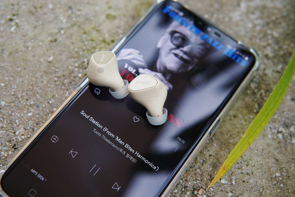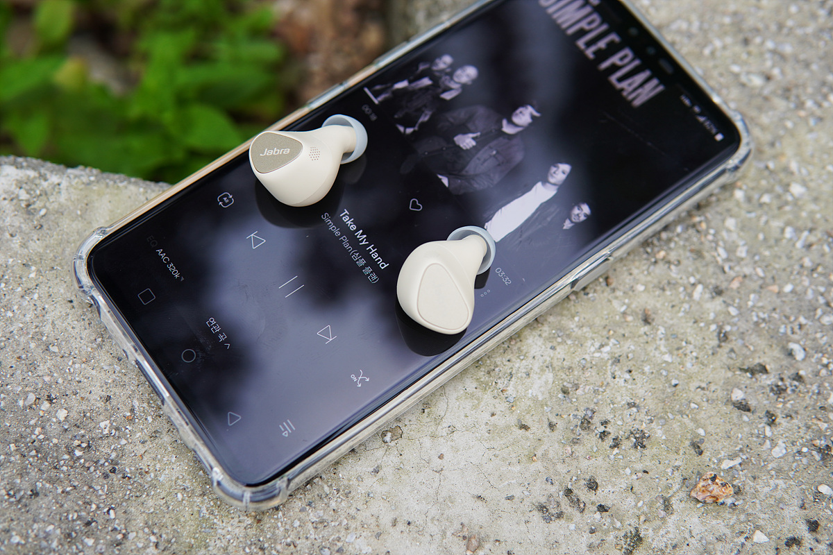 이어버드를 귀에서 빼면 착용 감지 센서에 의해 음악이 자동으로 멈추며 다시 귀에 착용을 하더라도 자동으로 재생이 되지는 않습니다. 이전 제품들과 마찬가지로 이런 기능은 Jabra의 특징인 거 같습니다.