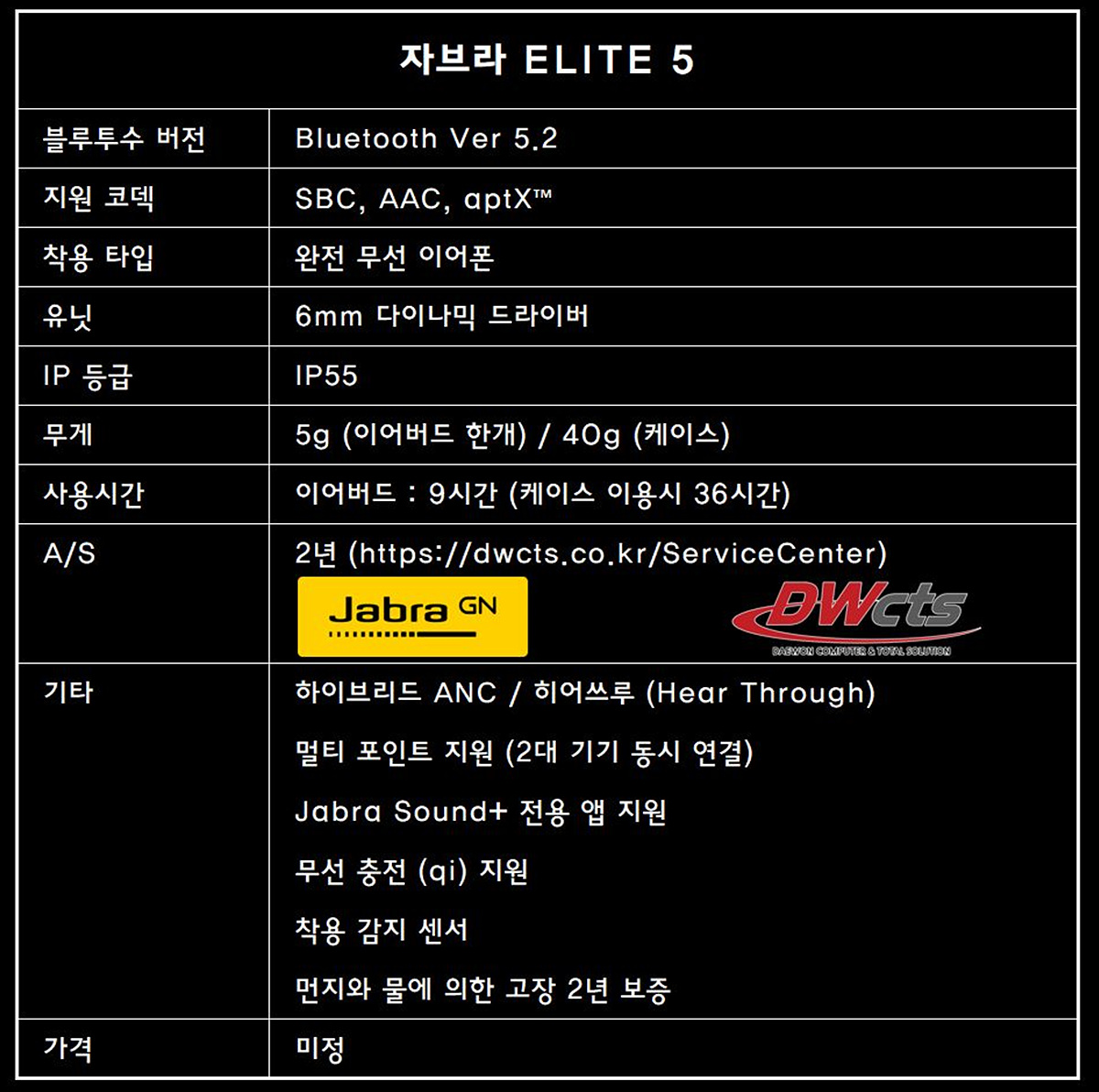 매달 다양한 브랜드에서 새로운 블루투스 기기들이 출시가 되고 있고 기능적인 부분에서도 상향 평준화가 많이 되어서 테스트를 하는 입장에서는 소개하고 평가를 하는 게 어렵고 힘들기도 하지만 반대로 설레기도 하고 즐겁기도 합니다. 이번 시간에는 Jabra의 새로운 블루투스 이어폰으로 기존 엘리트 3과 7 라인업의 딱 중간 라인업인 Elite 5 이어폰입니다. 블루투스 헤드셋을 처음으로 선보인 자브라는 그동안 다양한 라인업의 제품들을 출시해 왔으며 완성도에 있어서도 좋은 평가를 받고 있습니다.