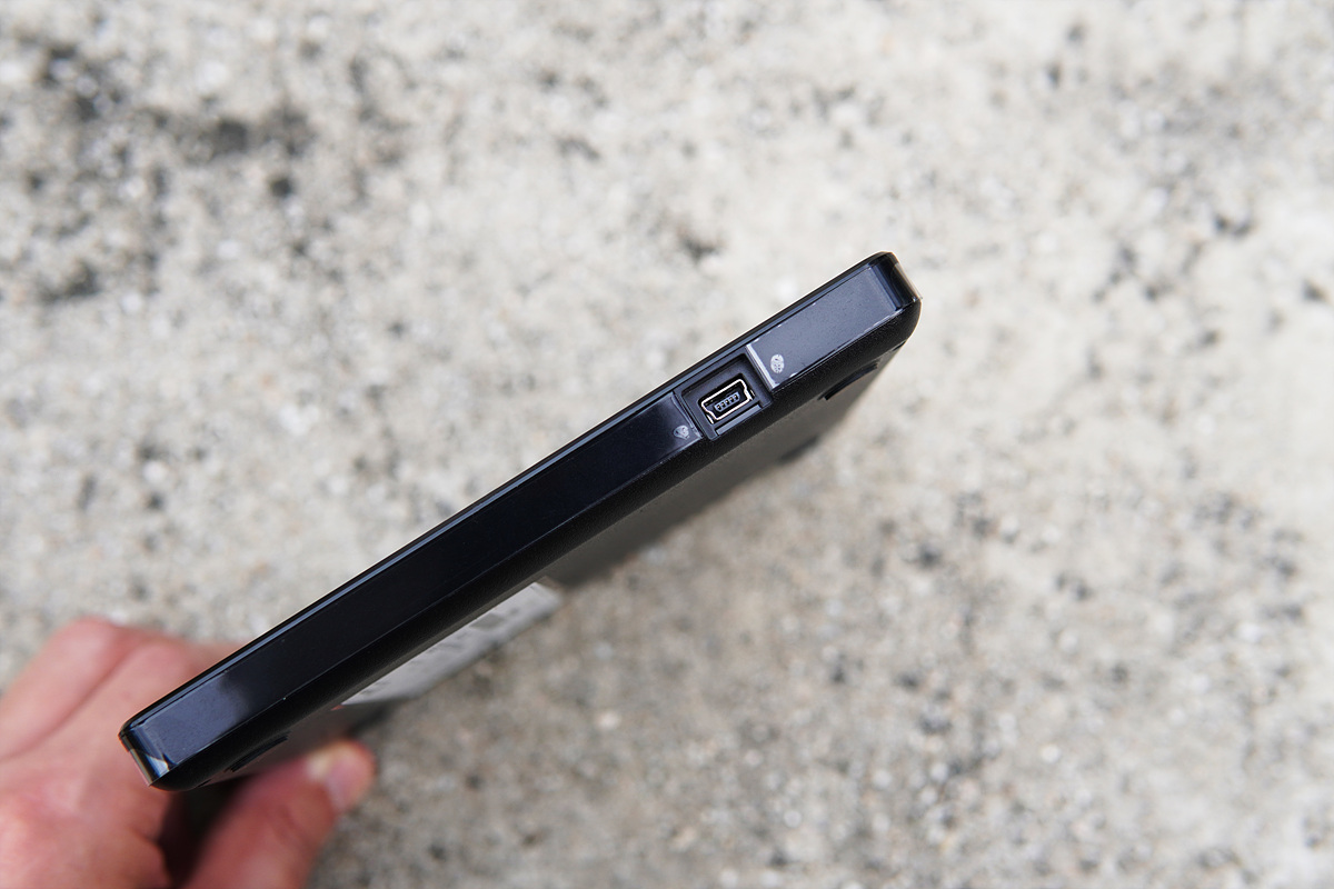 뒤쪽에는 전원과 데이터를 위한 미니 5핀 커넥터가 있으며