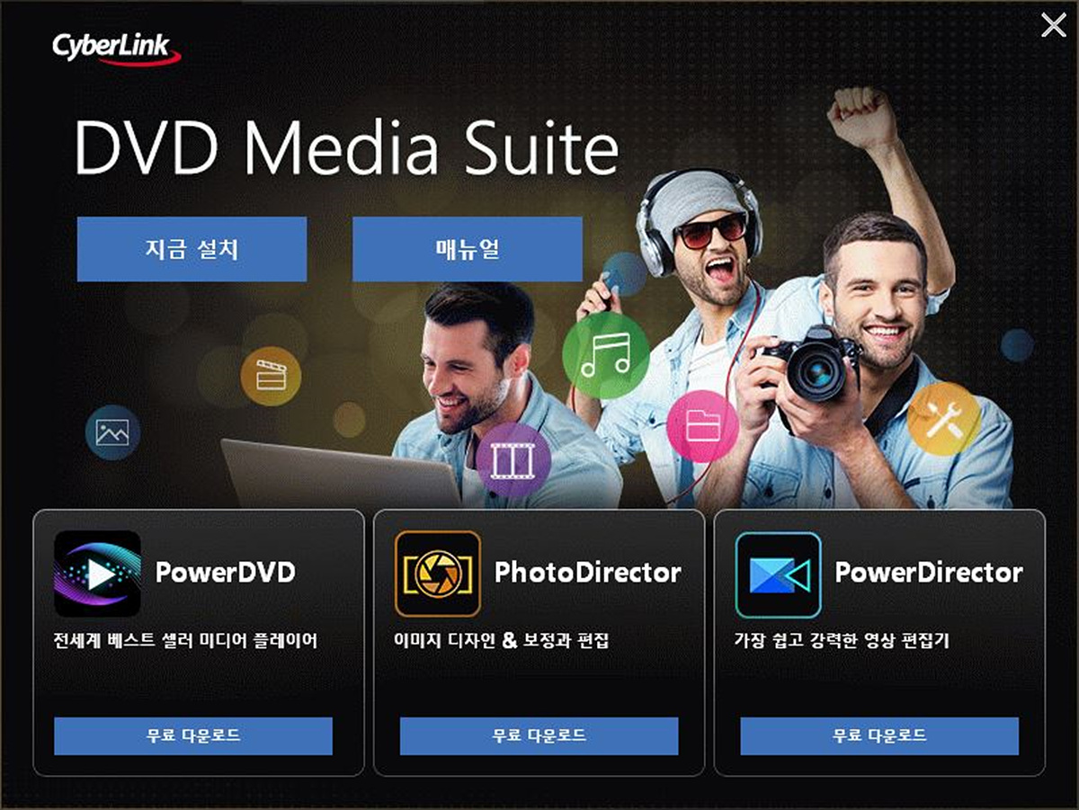 번들로 제공되는 DVD Media Suite로 여러 가지 작업(데이터, 음악, 라벨)을 할 수 있습니다. 아래에 있는 3개의 프로그램은 직접 설치가 아닌 다운로드 후 설치가 됩니다.