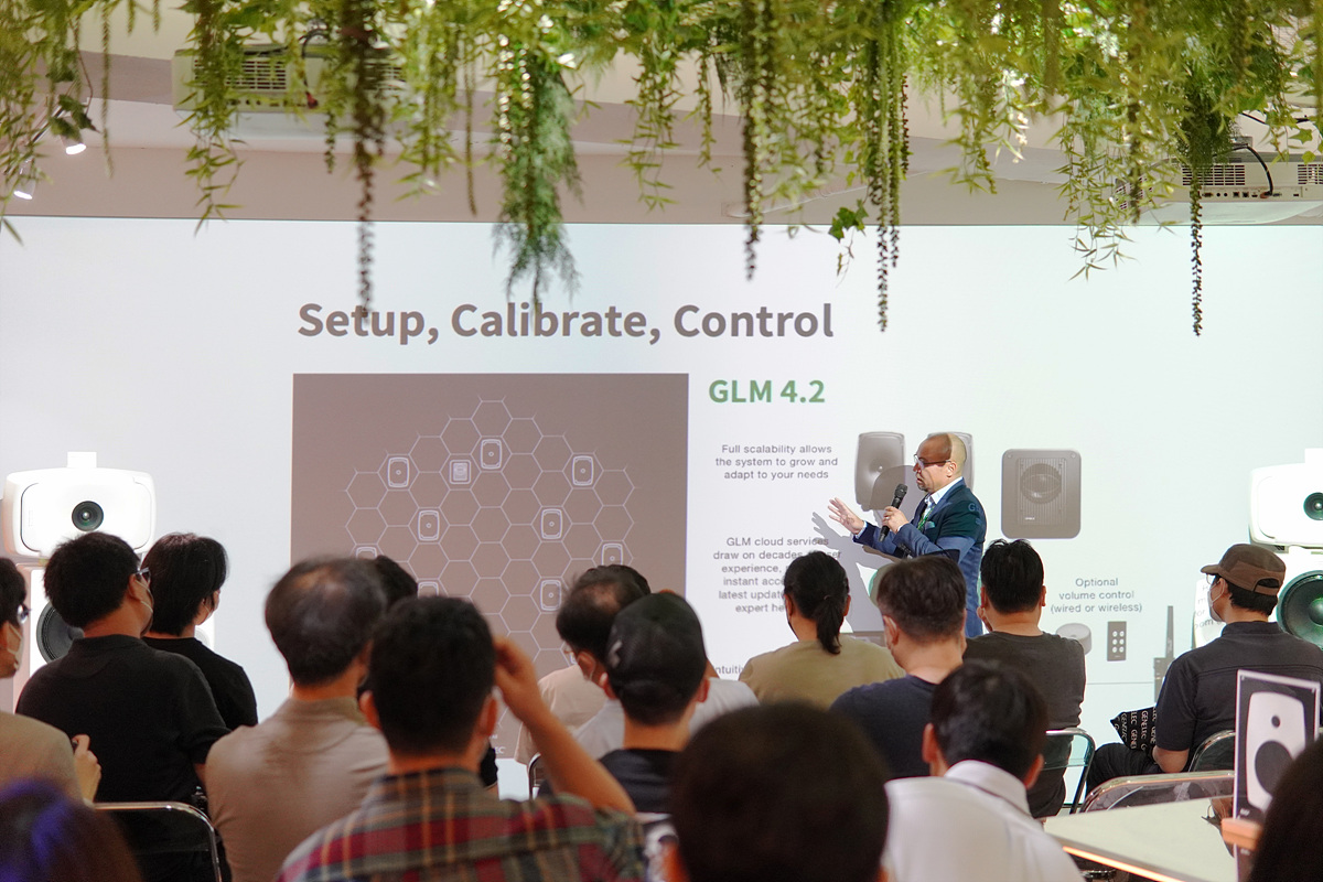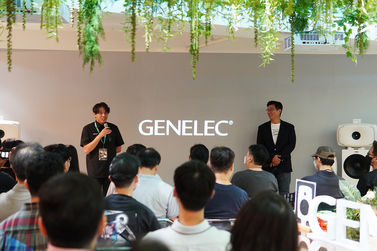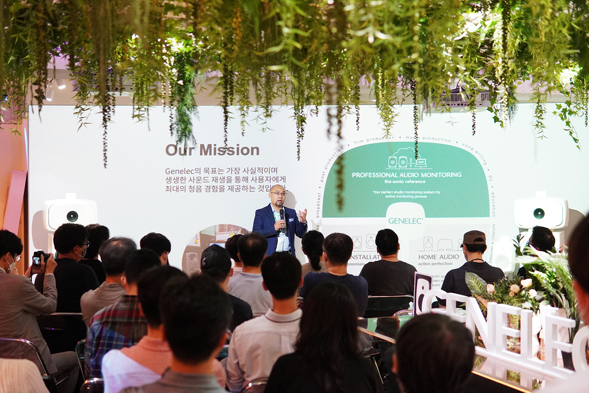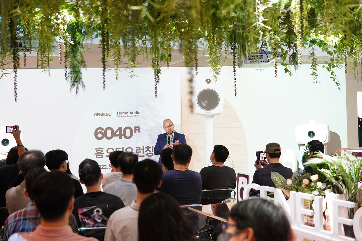이번 행사에는 제넬렉을 대표하는 제품인 6040R과 함께 홈 오디오 라인업 스피커인 G1, G2, G3, G4, G5와 스피커에 연결할 수 있는 서브우퍼인 F1, F2를 같이 소개하는 자리입니다.