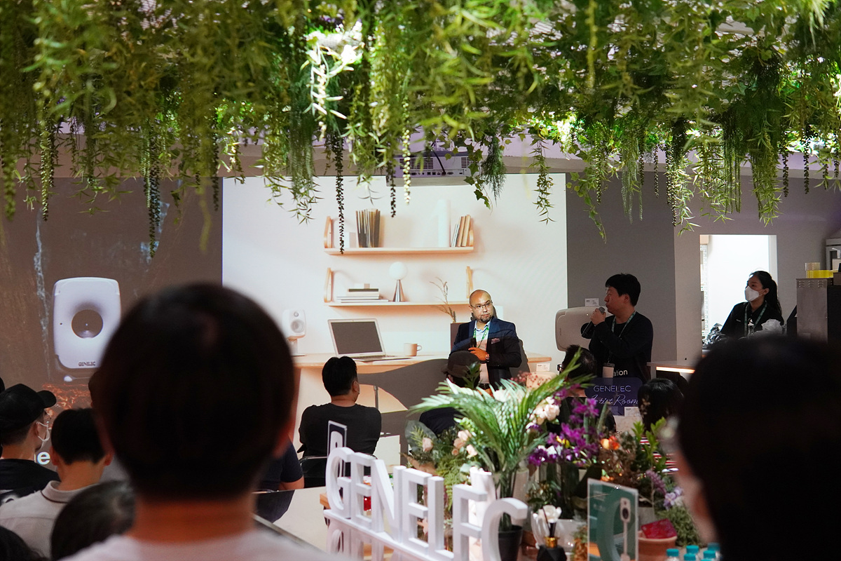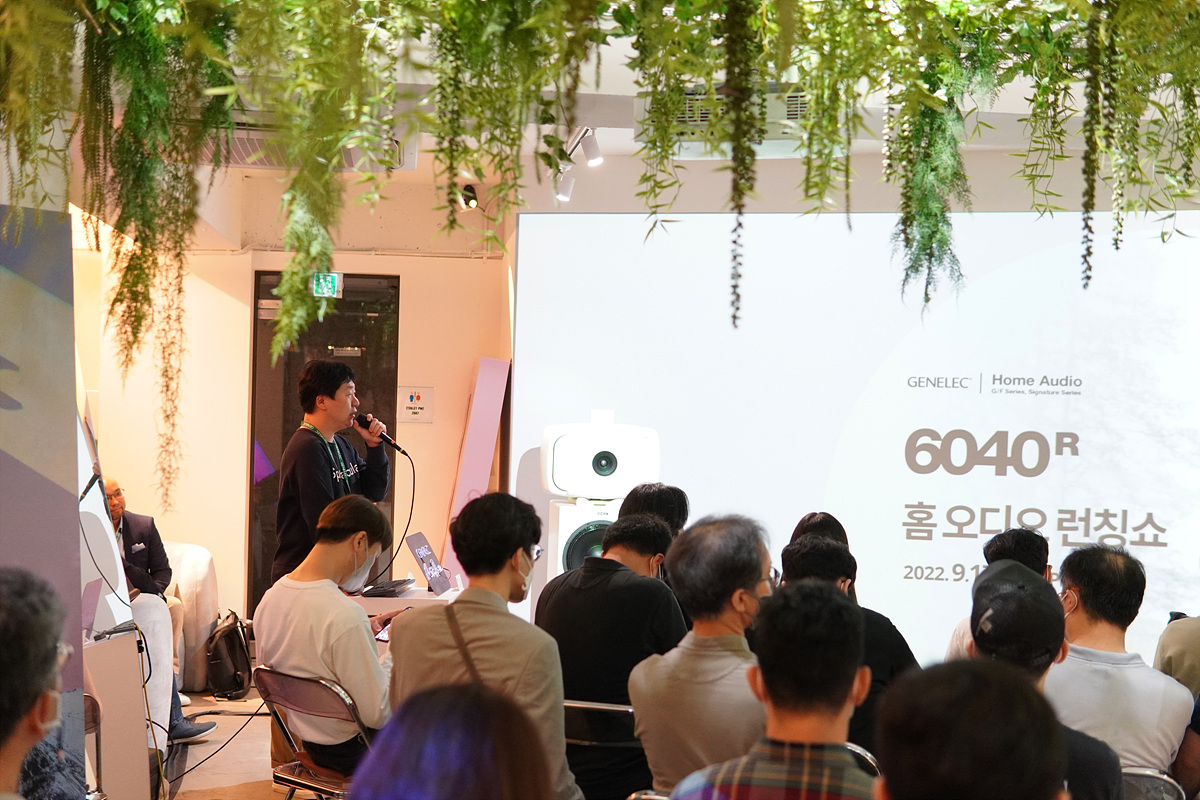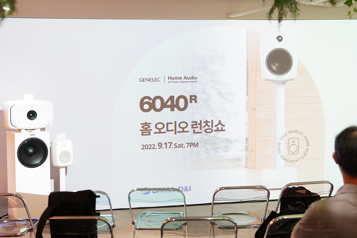 이번 행사에는 제넬렉을 대표하는 제품인 6040R과 함께 홈 오디오 라인업 스피커인 G1, G2, G3, G4, G5와 스피커에 연결할 수 있는 서브우퍼인 F1, F2를 같이 소개하는 자리입니다.