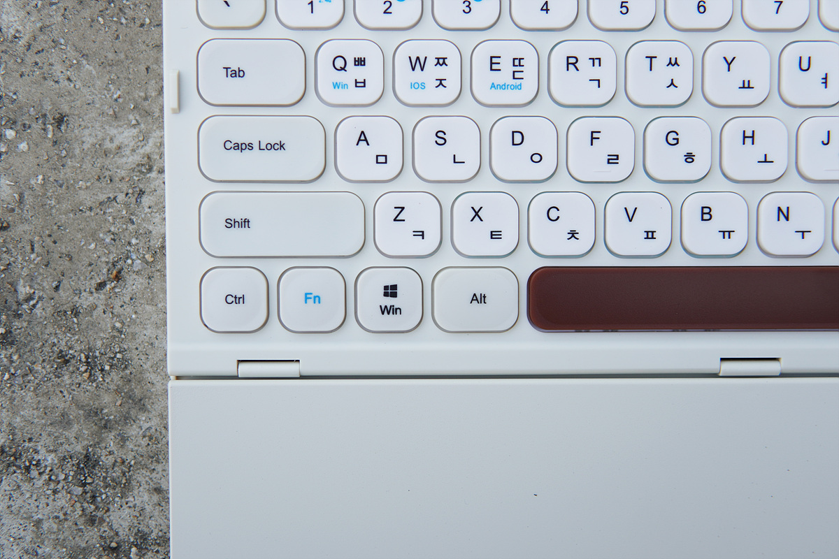 키(key)뿐 아니라 키캡 사이의 간격 역시 일반적인 키보드와 거의 비슷해서 적응하는데 어려움은 없었습니다. 키감은 다른 펜타그래프 키보드보다는 바닥을 때리는 느낌이 좀 더 딱딱한 편이었습니다. 저처럼 파워 타건을 하는 분들보다는 구름 타법처럼 부드럽게 치는 분들에게 더 잘 맞을 거 같네요. 스페이스의 철심 소리는 느껴졌지만 기기의 특성상 딱히 아쉽게 느껴지지는 않았습니다.