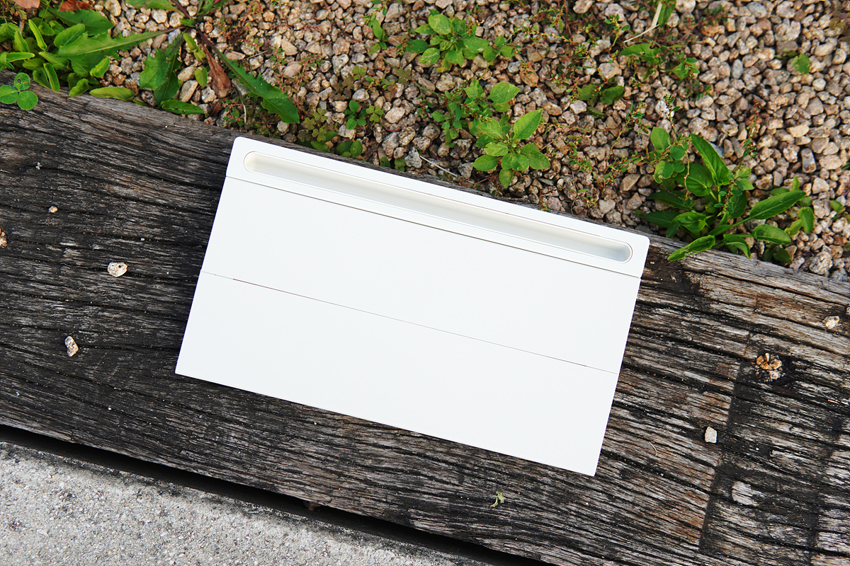 커버는 다시 반으로 접혀서 팜레스트로도 활용할 수 있습니다. 이렇게 접히지 않는 구조였다면 공간을 많이 차지했을 텐데 이런 아이디어는 정말 좋네요.