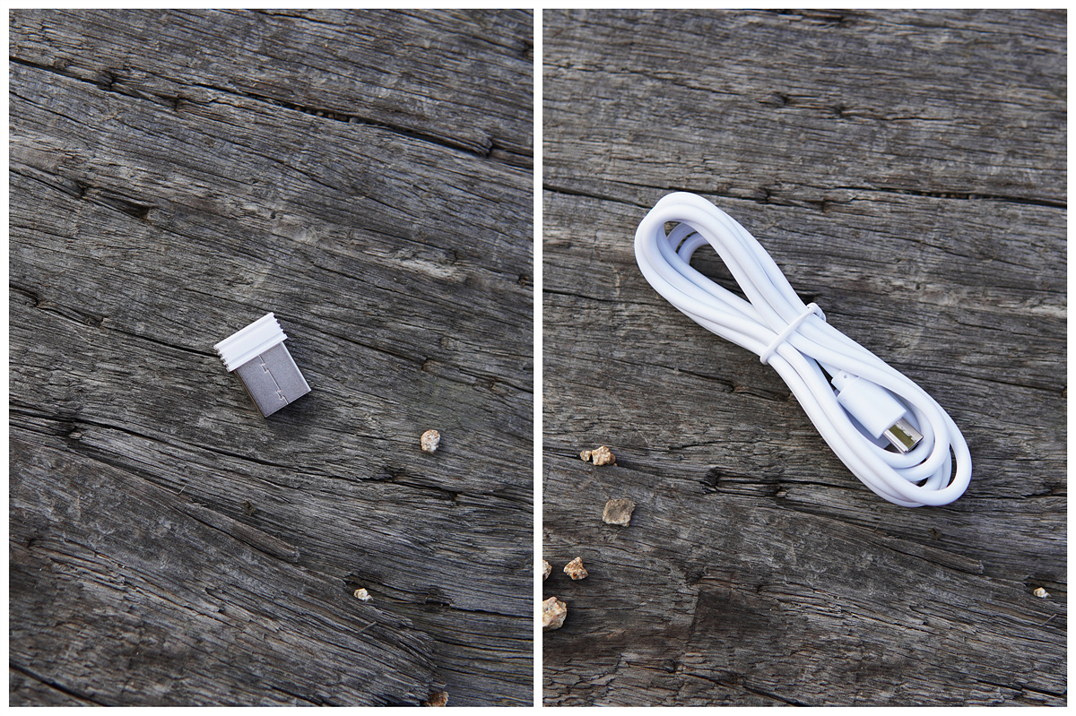 키보드, 설명서, 무선 수신기와 충전용 케이블로 이루어져 있습니다.