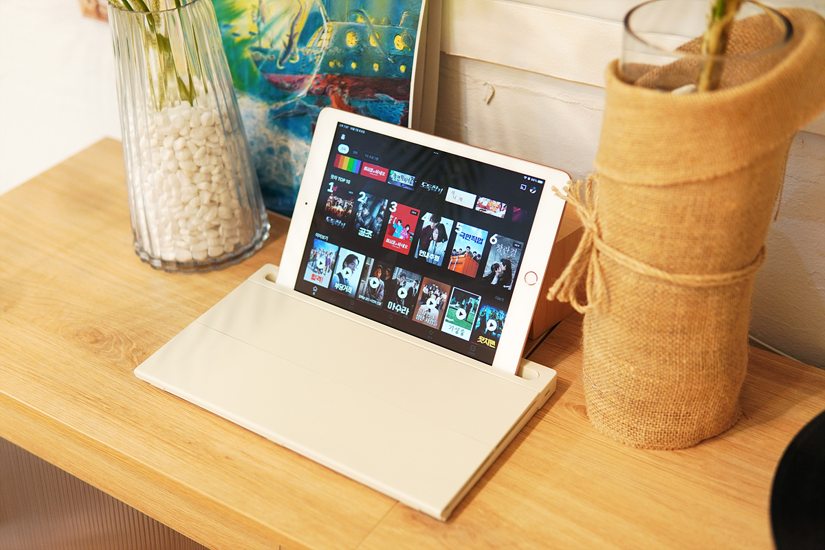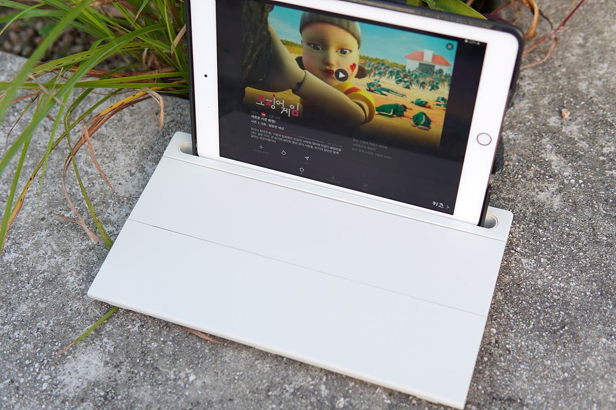 키보드의 커버를 닫은 상태라도 태블릿 거치대로 사용할 수 있습니다.