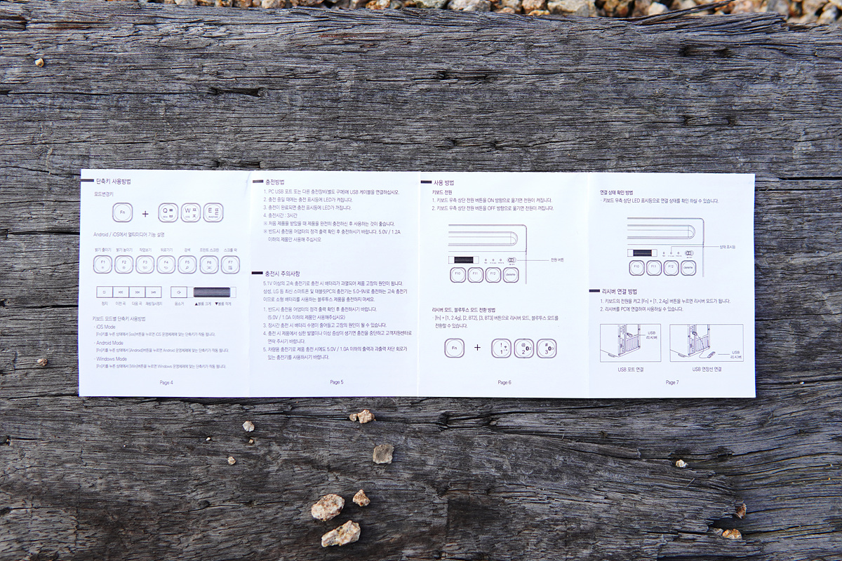 키보드의 블루투스 연결(페어링)이나 전환, Windows / IOS / 안드로이드의 환경에 맞는 단축키가 설명되어 있으므로 사용하기 전 꼭 읽어보시기 바랍니다.