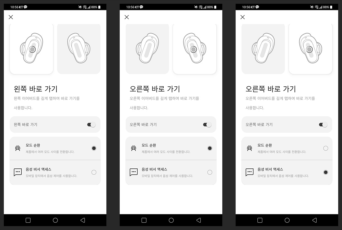 모드 순환이나 음성 비서(Google Assistant, Siri)를 선택할 수 있습니다.