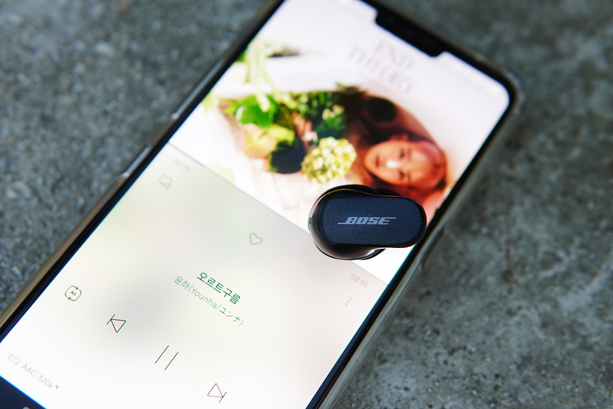소리에 있어서는 제가 알던 기존의 보스(BOSE)의 느낌과는 상당히 달랐습니다. 소개에서도 언급했지만 보스 하면 저음의 양감이 상당히 많은 편이었는데 QC 이어버드 2에서는 이런 저음이 많이 줄어들었으며 기존에 부족하다고 느껴지던 고음도 많이 보강이 되었습니다. 전체적인 느낌은 전형적인 "V" 곡선을 그리는 느낌에 저음역대가 강한 편이지만 전체적으로 밸런스가 무너지지는 않았습니다. 제가 저음이 많은 걸 좋아하지 않는 이유가 저음이 많아질수록 저음이 뭉쳐지면서 웅웅~ 거리는 소리 때문인데 이런 느낌이 아닌 디테일이 잘 살아있었습니다.
