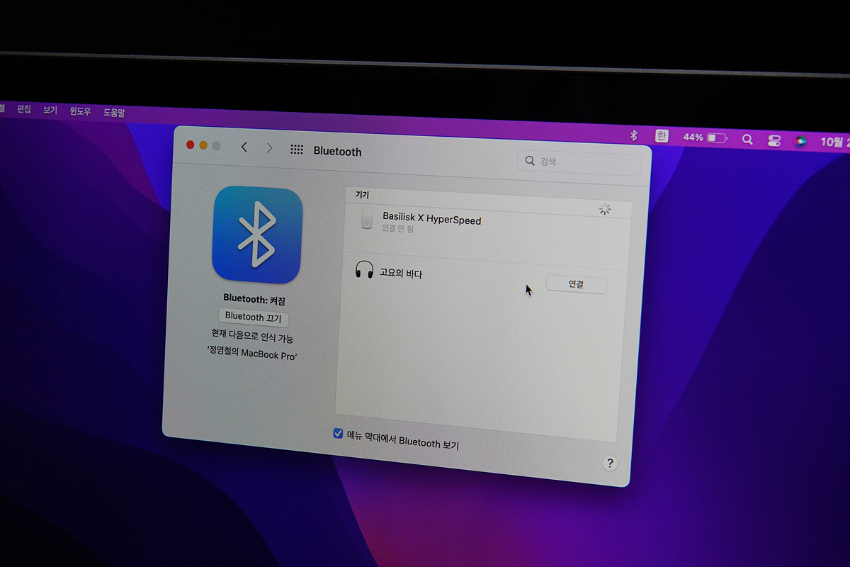 페어링 모드로 진입하면 안쪽에 있는 LED가 파란색으로 깜빡거리게 됩니다.