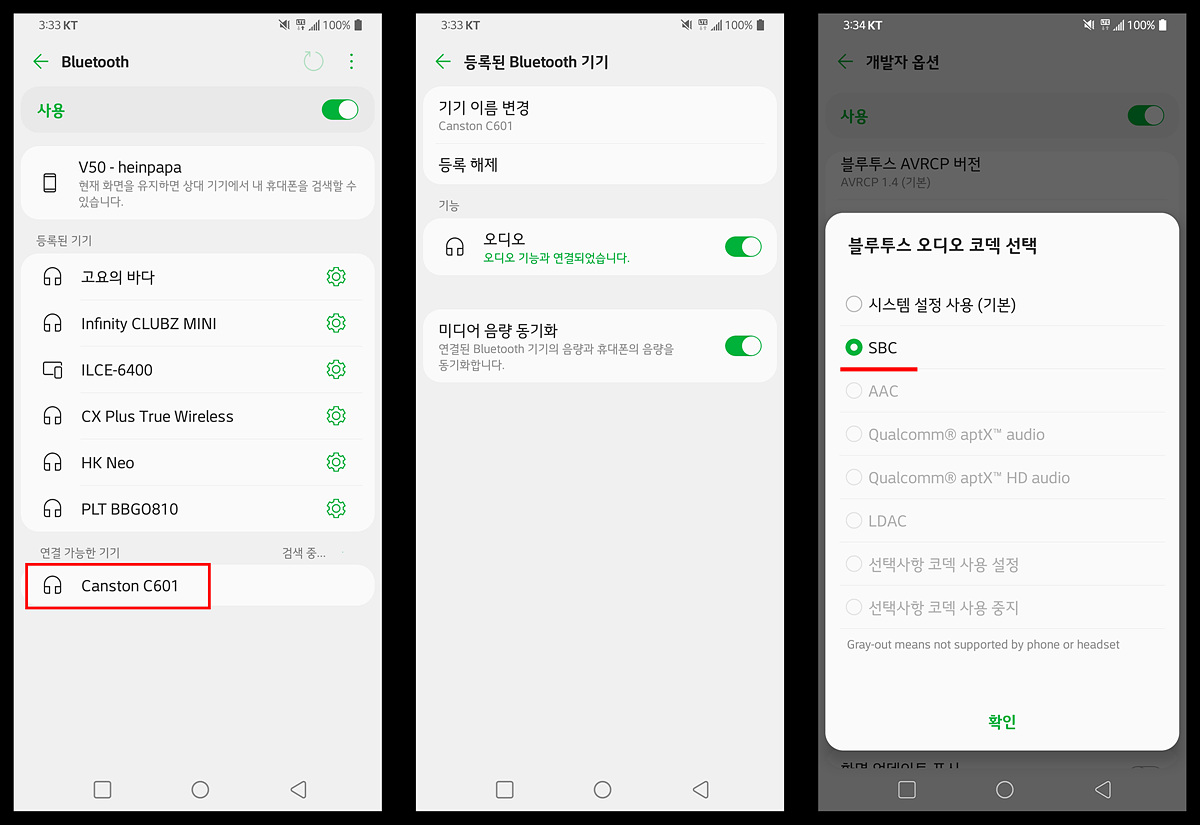 2. SBC 코덱만 지원 (AAC, aptx™ 코덱 미지원)