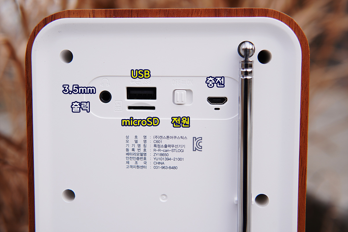 FM 라디오의 수신율을 높이기 위한 내장 안테나의 길이가 상당히 길어서 좀 놀랐습니다. ^^ 안테나는 꺾이기 쉬우니 전부 다 뽑기보다는 반 정도만 뽑아서 사용하는 걸 추천합니다.