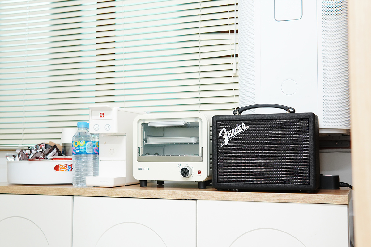 장식장, 거실, 주방 어디에 두어도 인테리어적으로도 아주 만족스러웠습니다. 인디오2는 노란색인 트위드도 있는데 실제 앰프보다 조금 더 밝은 느낌이라 화이트 계열의 인테리어에 잘 맞을 거 같고 남자들보다 여성 사용자들이 좀 더 좋아할 거 같네요. 저는 트위드보다는 블랙에 한표 던집니다. ^^