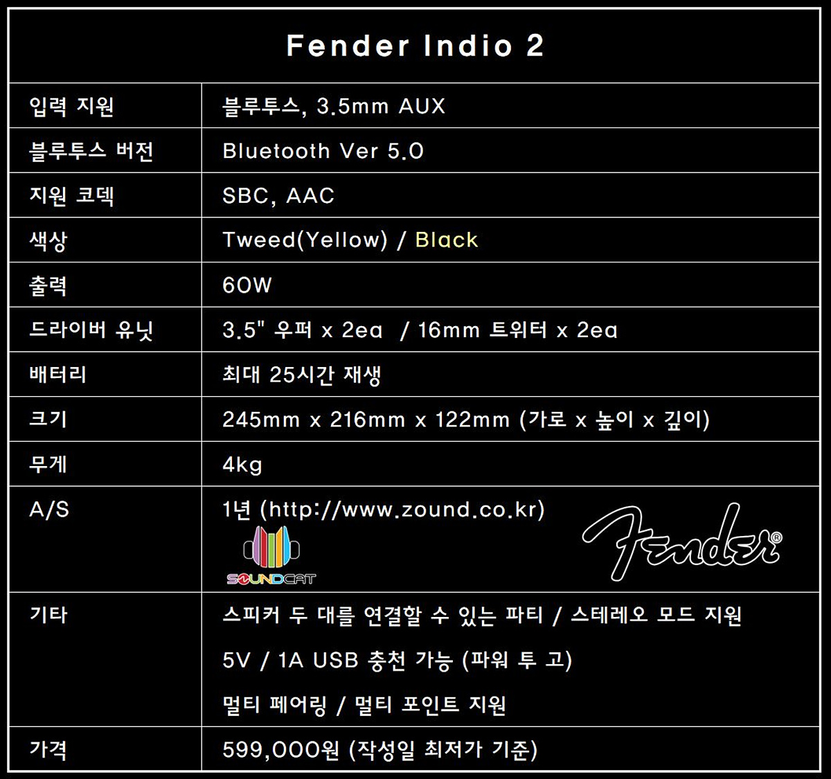 밴드 음악이나 기타 연주를 하는 분들에게 펜더(Fender)라는 이름은 상당히 친숙한 브랜드죠. 펜더는 일렉 기타에 연결되는 앰프도 상당히 유명해서 녹음이나 합주실에서 자주 볼 수 있습니다. 어릴 적 합주실에서 처음 봤던 기타 앰프가 펜더라서 개인적으로도 약간의 선망의 대상이기도 합니다. 이제 펜더의 기기들은 음악을 연주하거나 다루는 뮤지션뿐 아니라 일반적인 소비자들이 사용할 수 있는 여러 가지 제품을 출시하고 있는데 이번에 소개하는 인디오2 (Indio2)는 집, 작업실, 작은 규모의 영업장이나 캠핑에서 사용할 수 있는 블루투스 스피커입니다.