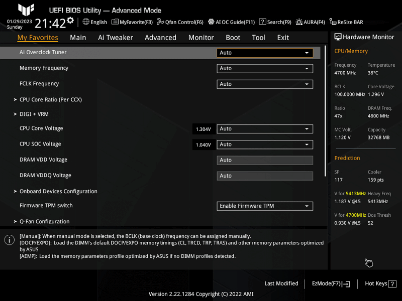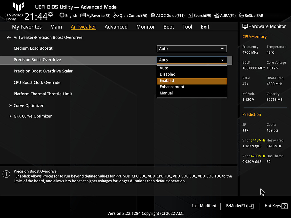 AI Tweaker에서는 오버클럭을 설정할 수 있지만 요즘은 수동으로 오버를 하기보다는 간단하게 PBO만 활성해서 사용하는 사용자들이 더 많은 거 같습니다. (저도 예전처럼 따로 수동으로 오버나 안정화를 하지는 않고 있네요.)