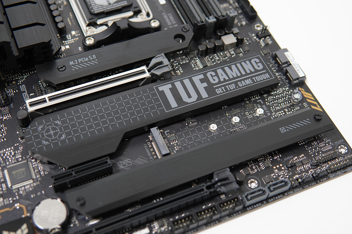 TUF Gaming X670E-PLUS 메인보드는 총 4개의 M.2 슬롯이 있는데 이 중에서 3개 슬롯에 방열판을 지원하고 있으며 가장 아래쪽에 있는 3,4번 슬롯의 방열판은 일체형으로 되어있습니다.