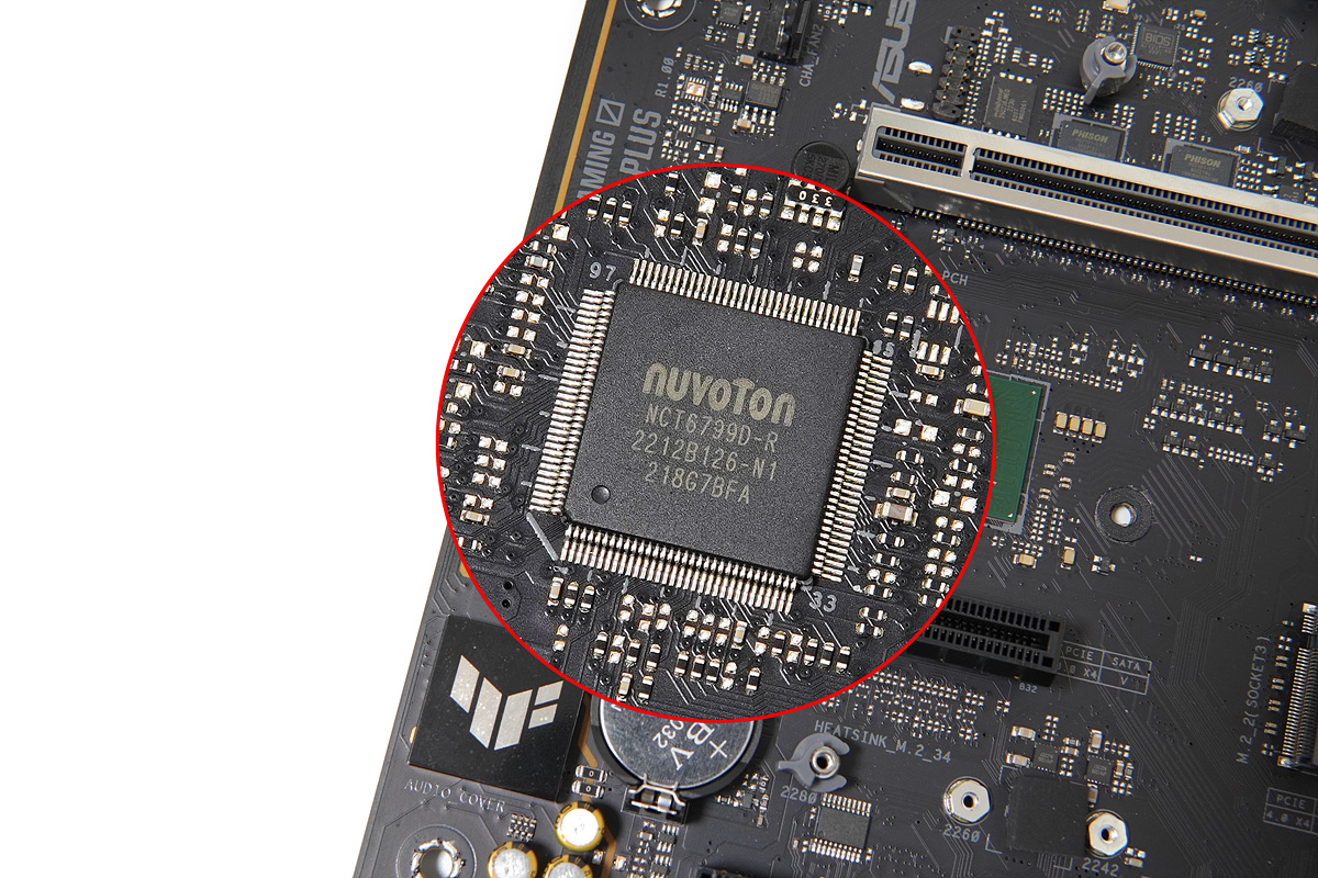 여러 가지 하드웨어들의 모니터링과 컨트롤을 담당하는 nuvoTon NCT67990D Super IO 칩셋입니다.