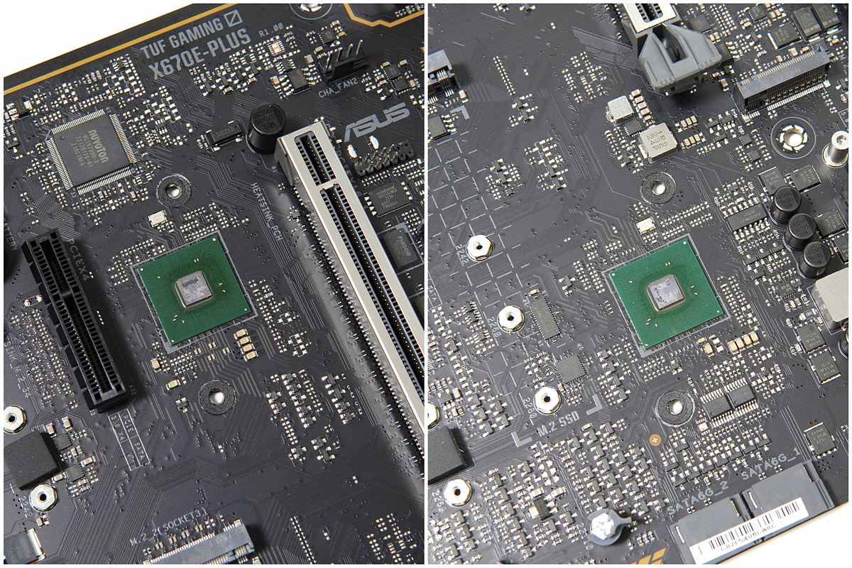 이전 X570 칩셋과 다르게 X670E은 두 개가 사용되었으며 보드 양쪽으로 배치되었습니다.