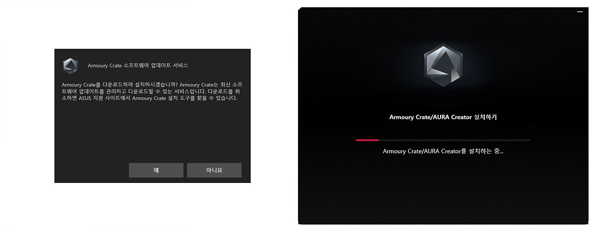 바이오스 설정을 마치고 윈도우로 부팅을 하게 되면 자동으로 Armoury Crate 소프트웨어가 설치 여부를 확인한 뒤에 다음 과정으로 진행이 됩니다. (물론 인터넷에 연결된 상태여야 합니다. ^^)