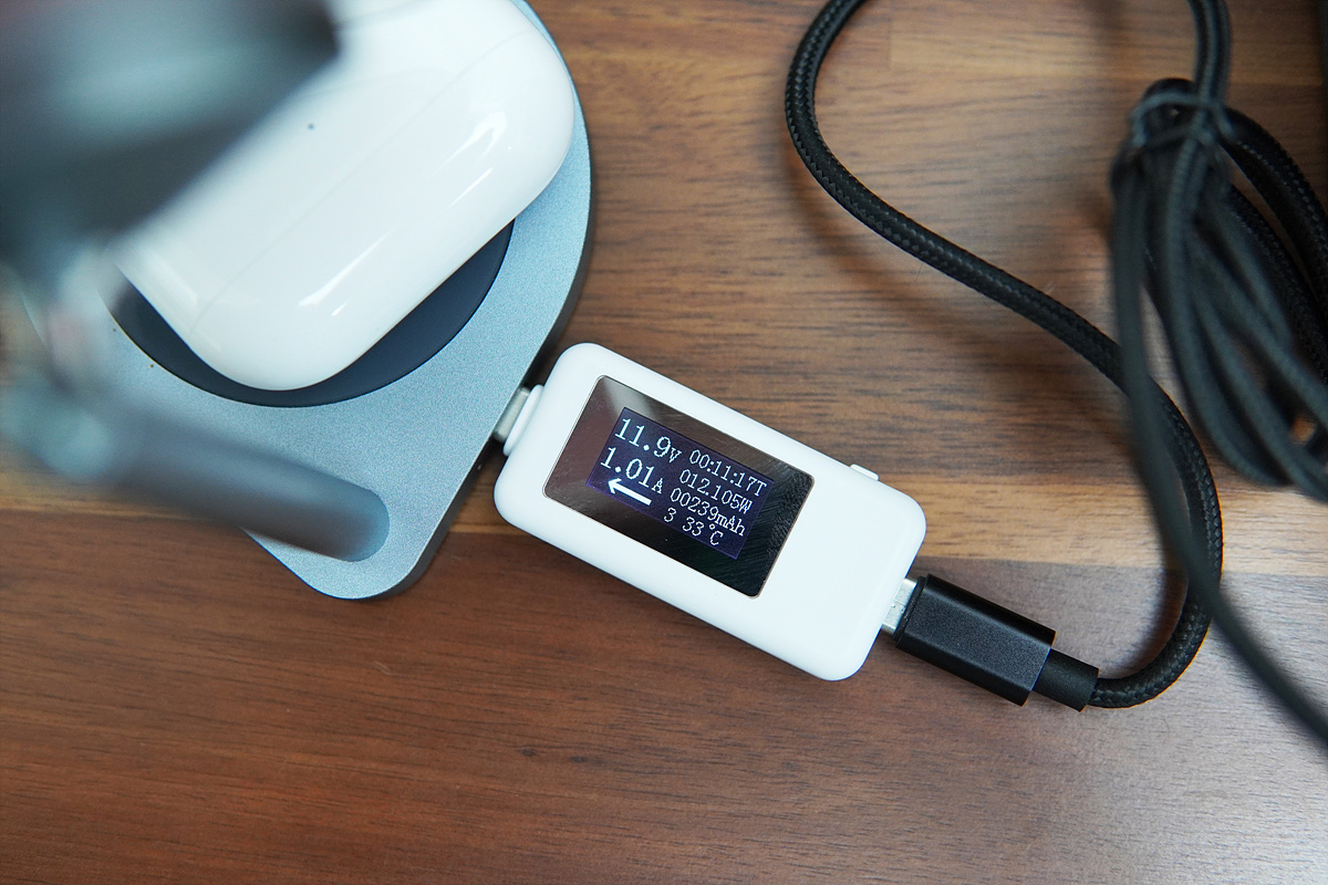 아이폰과 에어팟프로의 출력입니다. 멀티 충전기의 출력이 고정이 아닌 유동적으로 변하는 제품들은 충전하는 기기가 추가 or 제거가 되면 일시적으로 충전이 중단된 후에 자동으로 다시 충전이 됩니다. 이는 제품 불량이나 고장이 아니라 회로의 특성이니 꼭 참고하세요. 요즘은 단일 높은 출력이 필요한 한 개 포트를 고정으로 사용할 수 있는 제품도 있으니 이런 제품이 필요한 경우라면 해당 제품을 구매하시길 바랍니다.