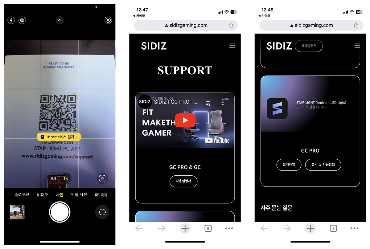 QR 코드를 인식하면 GC PRO의 설명과 소프트웨어를 다운로드할 수 있습니다. 전용 소프트웨어는 스마트폰이 아닌 컴퓨터에 설치를 해야 합니다.