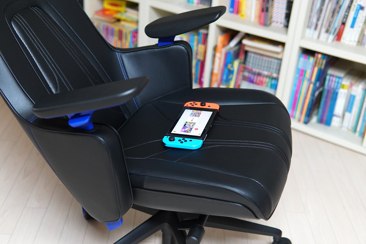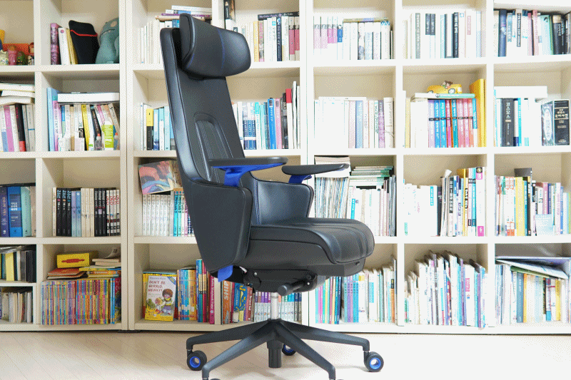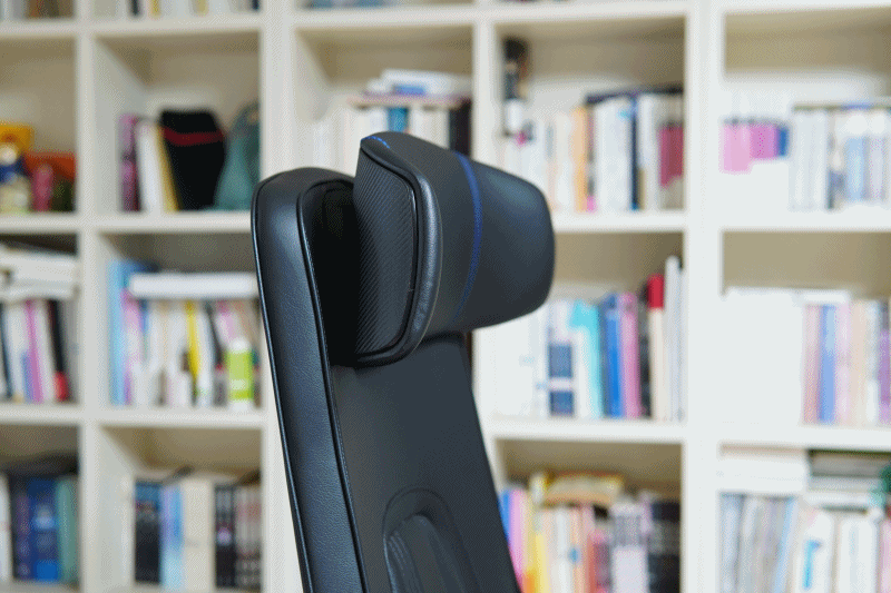저는 등받이를 90도로 고정하는 걸 좋아하지만 콘솔 게임을 좋아하는 분들은 이렇게 뒤로 기대서 사용하는 걸 좋아하더군요. 뒤로 기대었을 때 헤드레스트가 받쳐주는 부분이 넓어져서 편안하게 자세를 취할 수 있었습니다.
