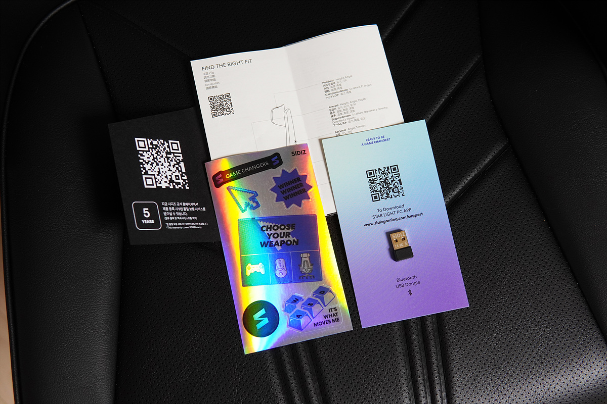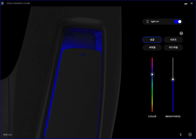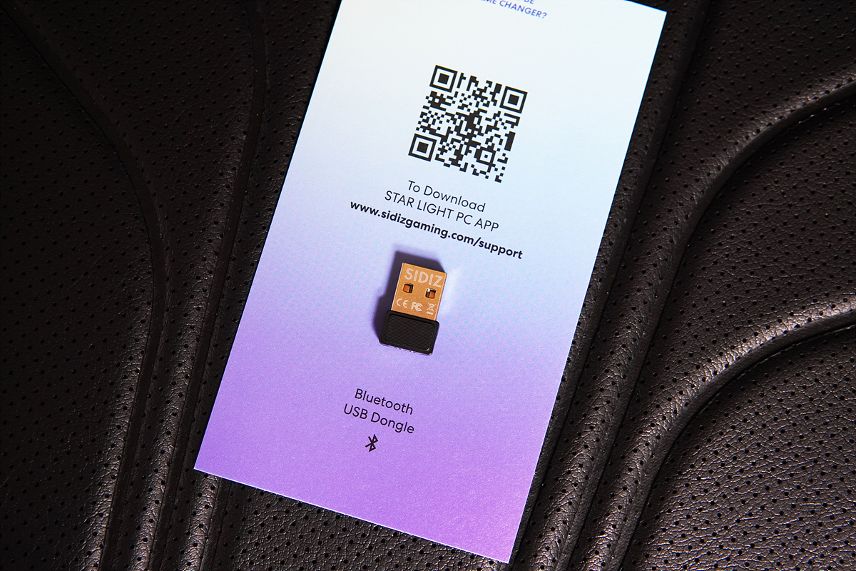 RGB LED는 의자에서 직접 조절할 수도 있지만 PC와 블루투스로 연결을 하고 전용 소프트웨어로 조작할 수 있습니다. 이때 의자와 PC를 블루투스로 연결하기 위해 USB 동글(Dongle)이 필요합니다.