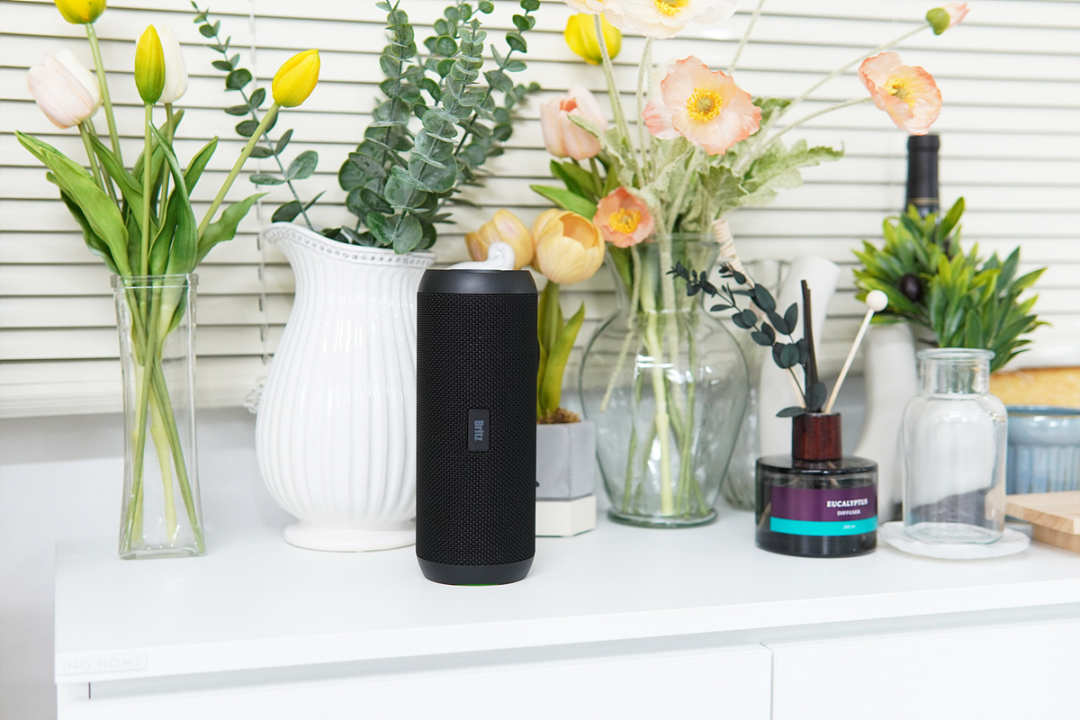 스피커의 디자인은 깔끔해서  실내뿐 아니라 야외에서 사용할 때도 튀지 않고 무난한 편입니다.