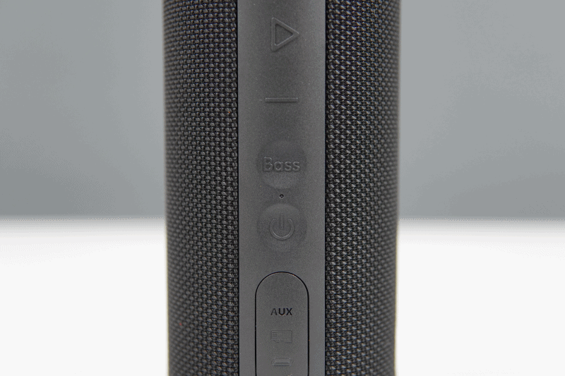 가운데에 전원을 비롯한 기능 버튼이 있으며 Bass로 EQ를 조절할 수 있습니다.