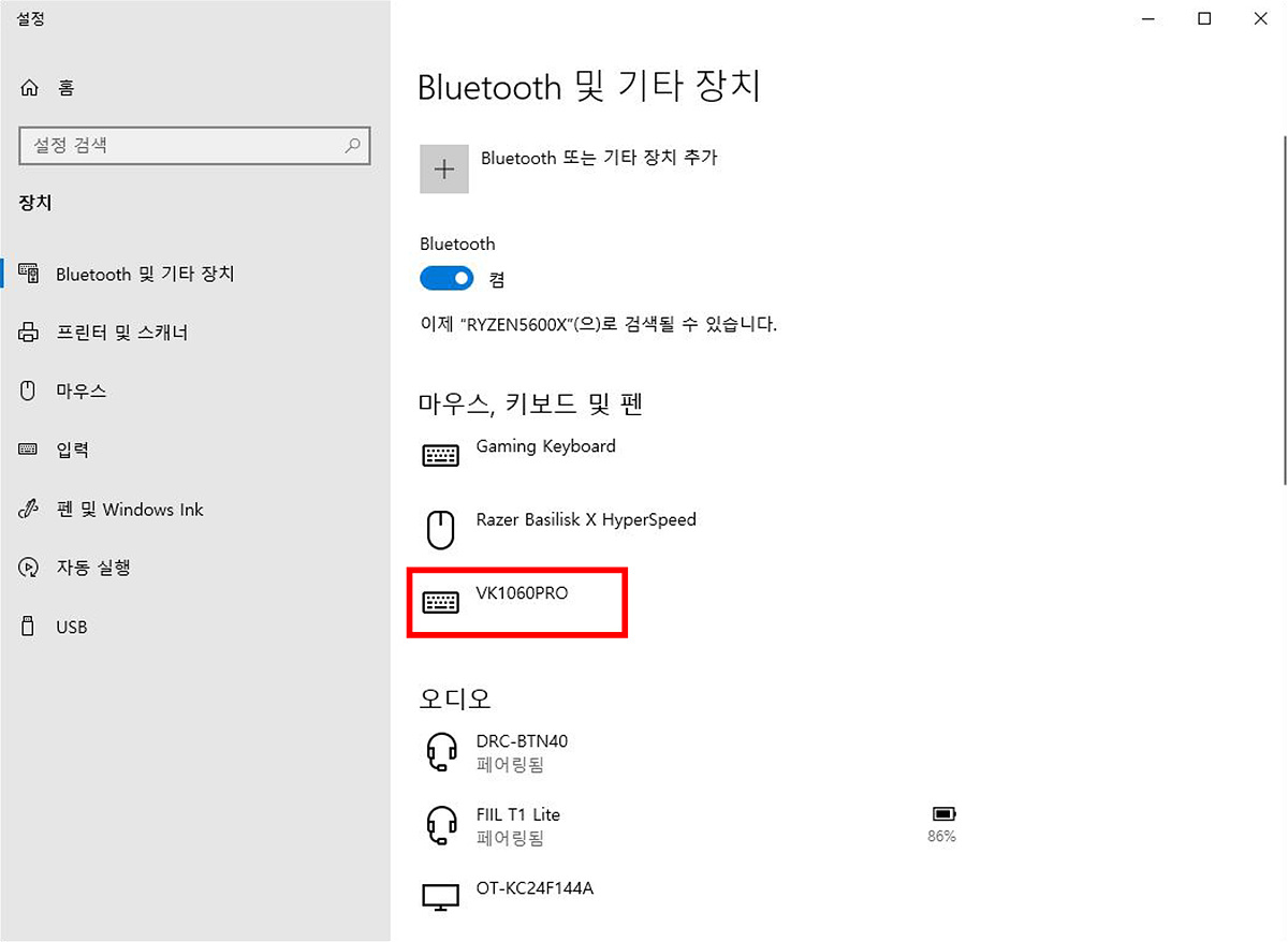 일반적인 데스크탑 PC(Windows)에 연결을 하면 VK1060Pro로 인식이 됩니다.