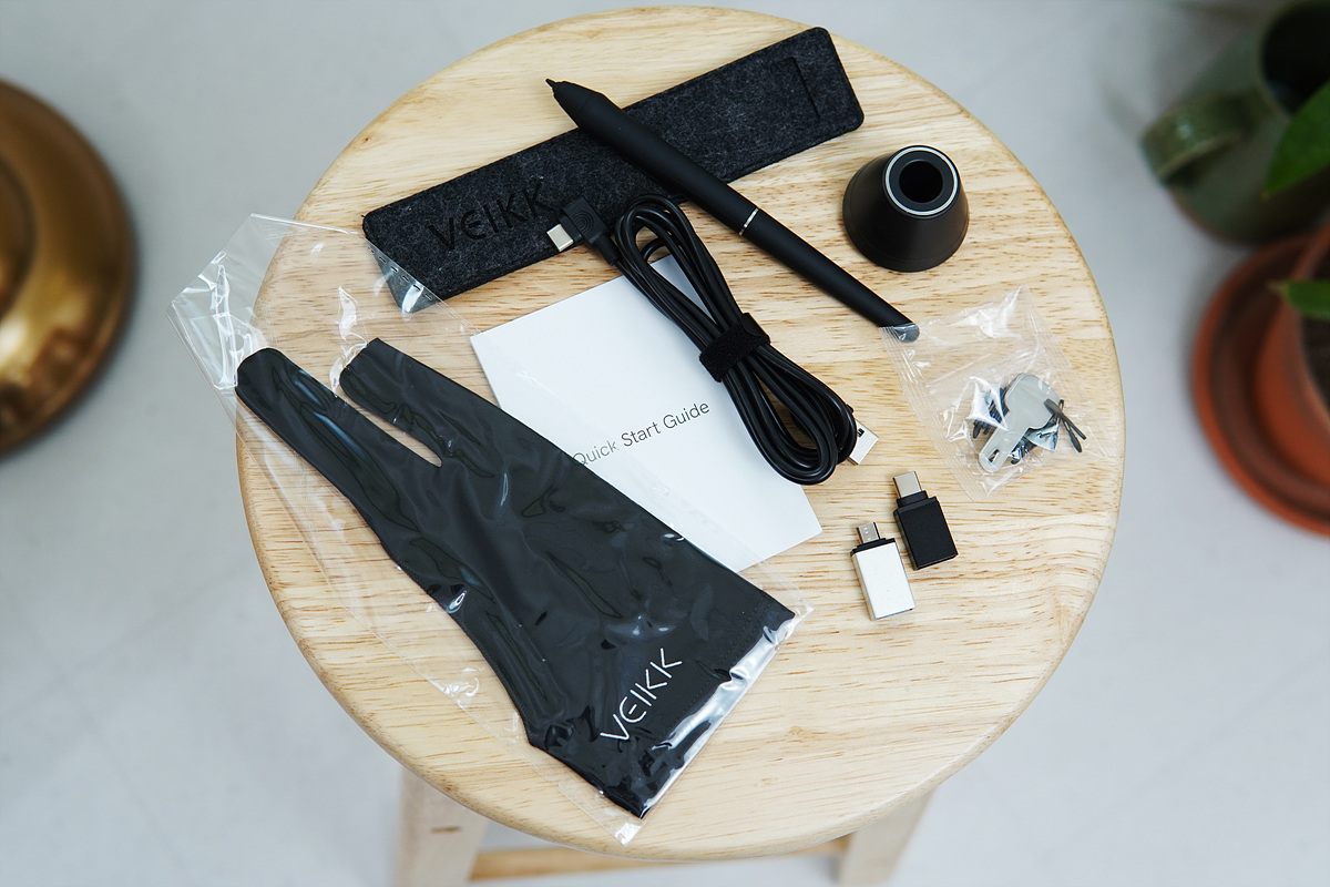 구성품은 드로잉 장갑, USB 케이블, OTG 젠더(Type-c, micro 5핀), 펜, 추가 펜팁, 거치대와 설명서로 이루어져 있습니다. 구성품은 박스 안쪽에 있으니 꼭 확인해 보세요. ^^