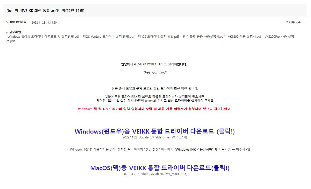 베이크코리아 VK1060Pro 타블렛 역시 입문자들부터 숙련자들까지 모두 사용할 수 있을만한 스펙과 함께 넓은 크기와 두 개의 퀵 다이얼로 편의성을 높인 제품입니다. 가벼운 무게의 펜 홀더와 별도의 번들 소프트웨어를 제공하지 않는 부분은 아쉽게 느껴졌지만 89,000원의 가격을 생각한다면 어느 정도 이해가 되는 부분이었습니다. USB 케이블이나 기본 드라이버(S/W)쪽만 개선이 된다면 가성비는 더더욱 높아질거라 생각됩니다.