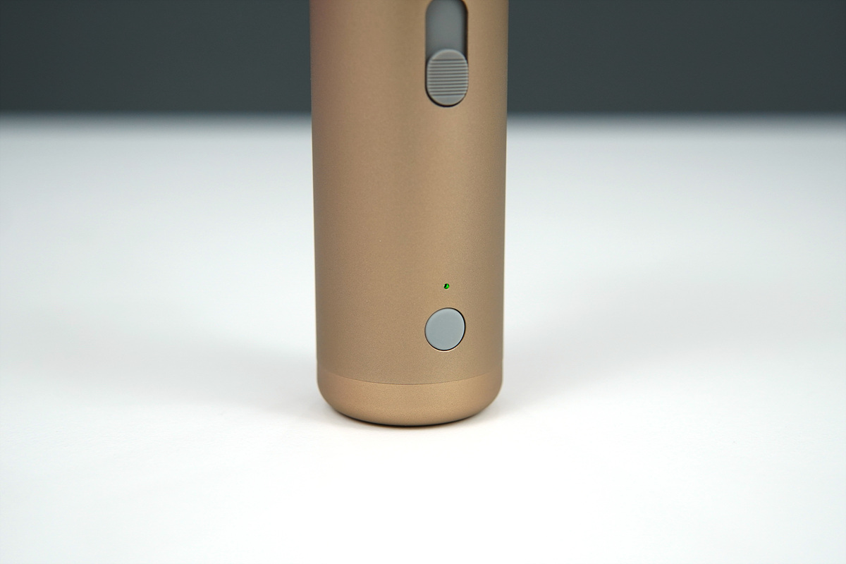 아래 전원 버튼을 1초 정도 누르면 에어건이 동작되고 짧게 한번 누르면 멈추게 됩니다. 현재 배터리의 상태는 LED 색(초록색 / 빨간색)으로 확인할 수 있습니다.