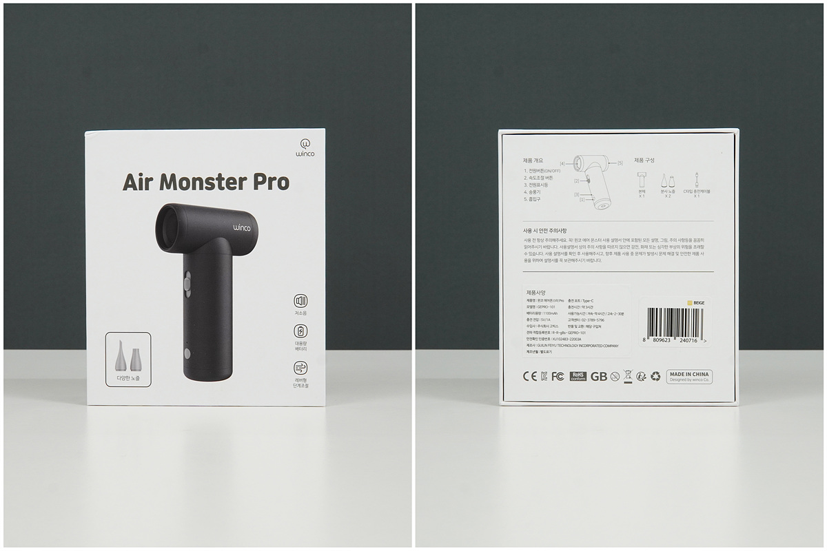 집안에서나 자동차 그리고 캠핑에서 유용하게 사용할 수 있는 충전방식의 에어건이 인기가 많아지면서 많이 판매가 되고 있지만 현재 판매되는 대부분의 제품들은 색만 조금씩 다르고 외형이나 구성품 그리고 기능까지 거의 같은 제품들이 대부분입니다. 이번에 소개하는 윈코 에어몬스터 프로 GEPRO-101 에어건은 외형부터 성능까지 현재 판매되고 있는 제품들과 확실하게 다른 에어건입니다. 마치 일반 선풍기와 다이슨 선풍기의 차이처럼 말이죠.