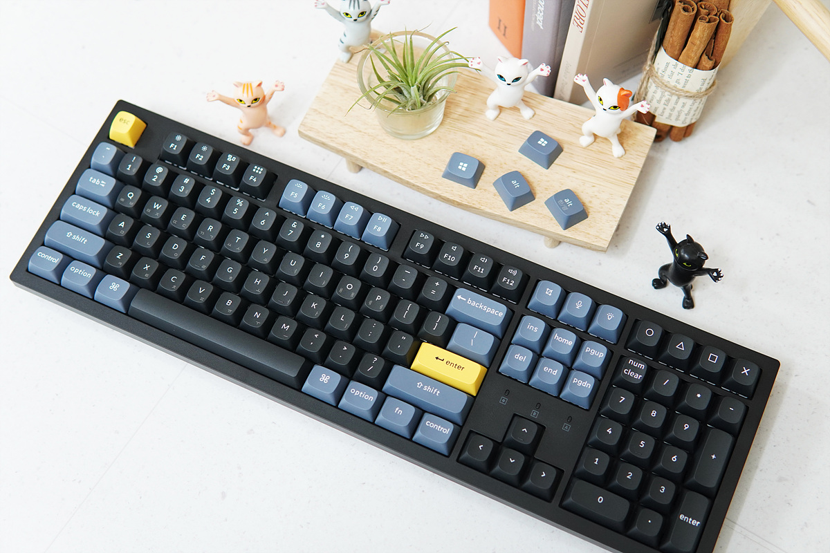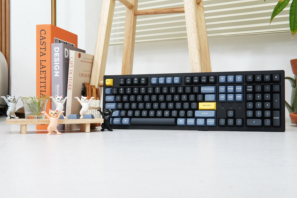 전체적으로 검은색(블랙) 하우징으로 되어있으며 키캡 역시 잘 어울리는 블랙 / 블루 두 가지 톤으로 되어있습니다. 첫인상은 상당히 단정하고 깔끔한 느낌이었습니다. 키크론의 Q8 Retro 제품처럼 밝은 색으로 출시를 해도 꽤 잘 어울릴 거 같습니다. 요즘은 레트로가 유행이니까요. ^^