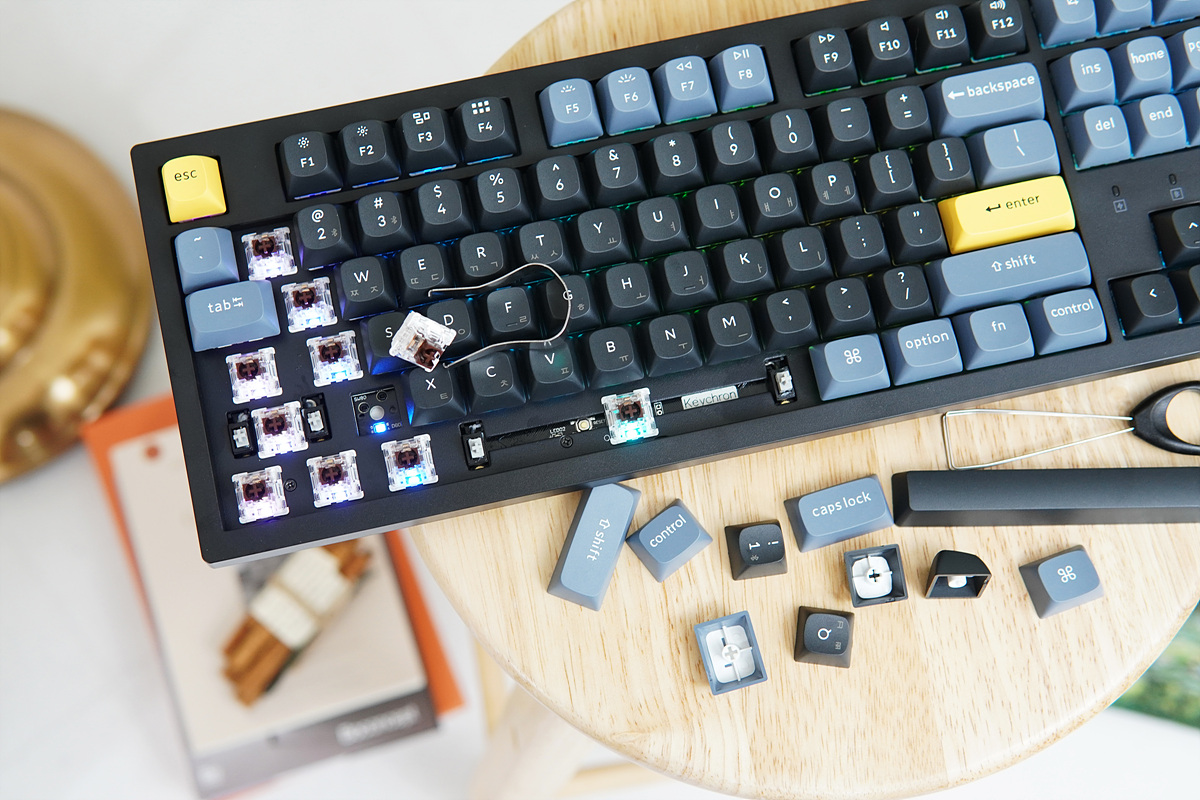 블루투스를 활용한 유무선 입력, 더 작아진 크기와 배열, 기존과는 다른 새로운 특주축(스위치) 이렇게 3개의 키워드는 현재 키보드 시장에서 가장 핫(hot)한 키워드로 앞으로도 계속해서 인기가 유지될 거라 예상하고 있습니다. 특히나 키보드를 좋아하는 키보드 덕후들에게 새로운 느낌의 스위치(특주축)는 가장 반가운 소식중 하나일테니까요. 이번에 소개하는 Keychron K10 PRO는 그동안 리니어 계열(적축, 흑축)에 주로 사용되었던 저소음 방식을 갈축(택타일, Brown) 스위치에도 적용한 저소음 갈축 스위치를 사용했습니다.