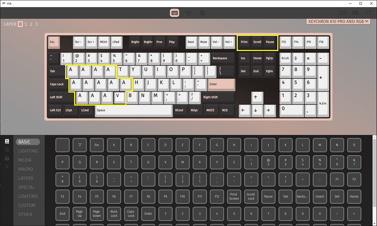 키크론의 Q, Pro 라인업 제품들의 특징 중 하나가 바로 이 QMK/VIA를 지원한다는 점입니다. 보드 내부의 칩셋이 있어야 이용할 수 있는 소프트웨어로 사용자가 원하는 대로 꾸밀 수 있습니다.